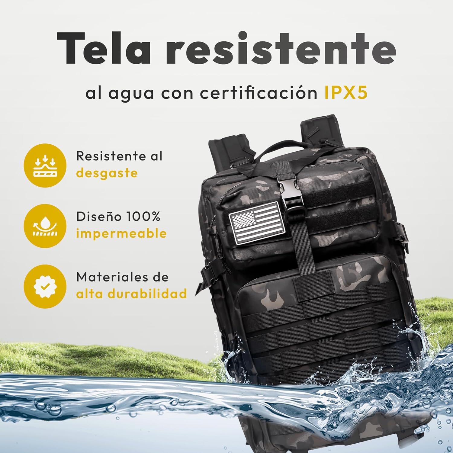 - Sistema Molle: Su diseño permite acoplar múltiples accesorios compatibles, optimizando la organización y personalización.
