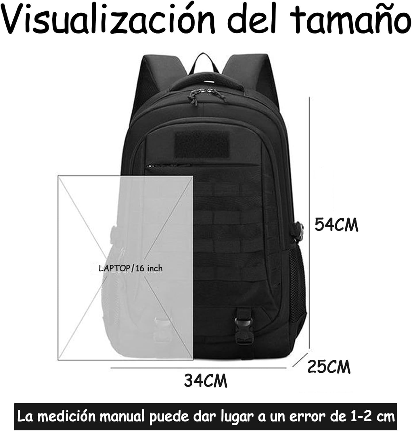 - Sistema MOLLE: Incluye sistema de correas MOLLE que permiten adjuntar accesorios adicionales, personalizando así la mochila según tus necesidades.