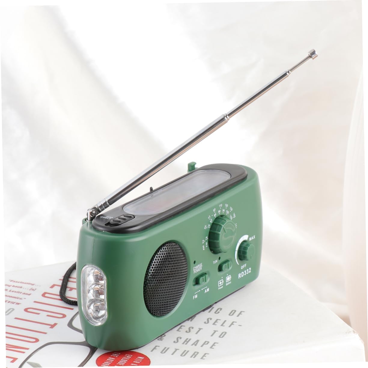 - Rendimiento: Dispositivo de multiuso que combina radio, linterna y cargador.
