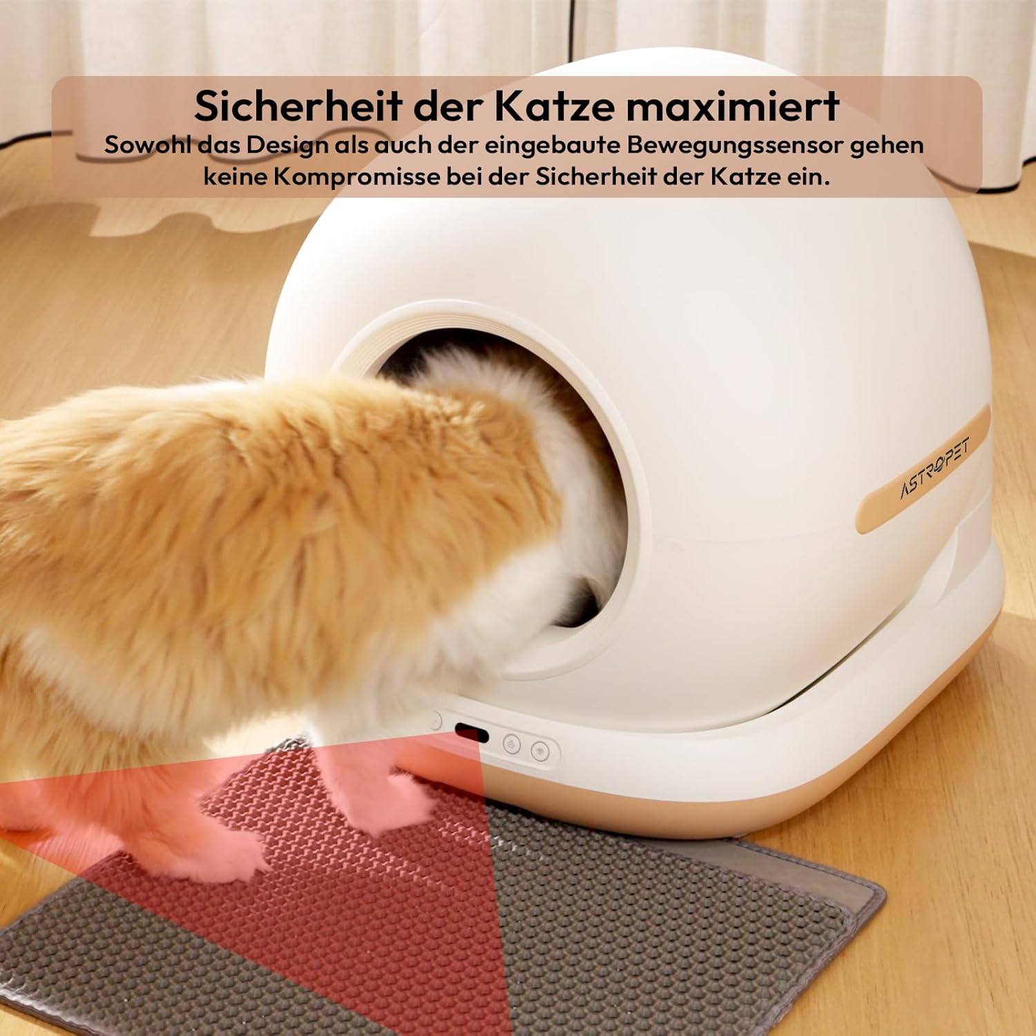 AstroPet 72L – Arenero para gatos autolimpiable con alfombrilla, control de aplicación, esterilización UV, protección de seguridad múltiple, adecuado para varios gatos