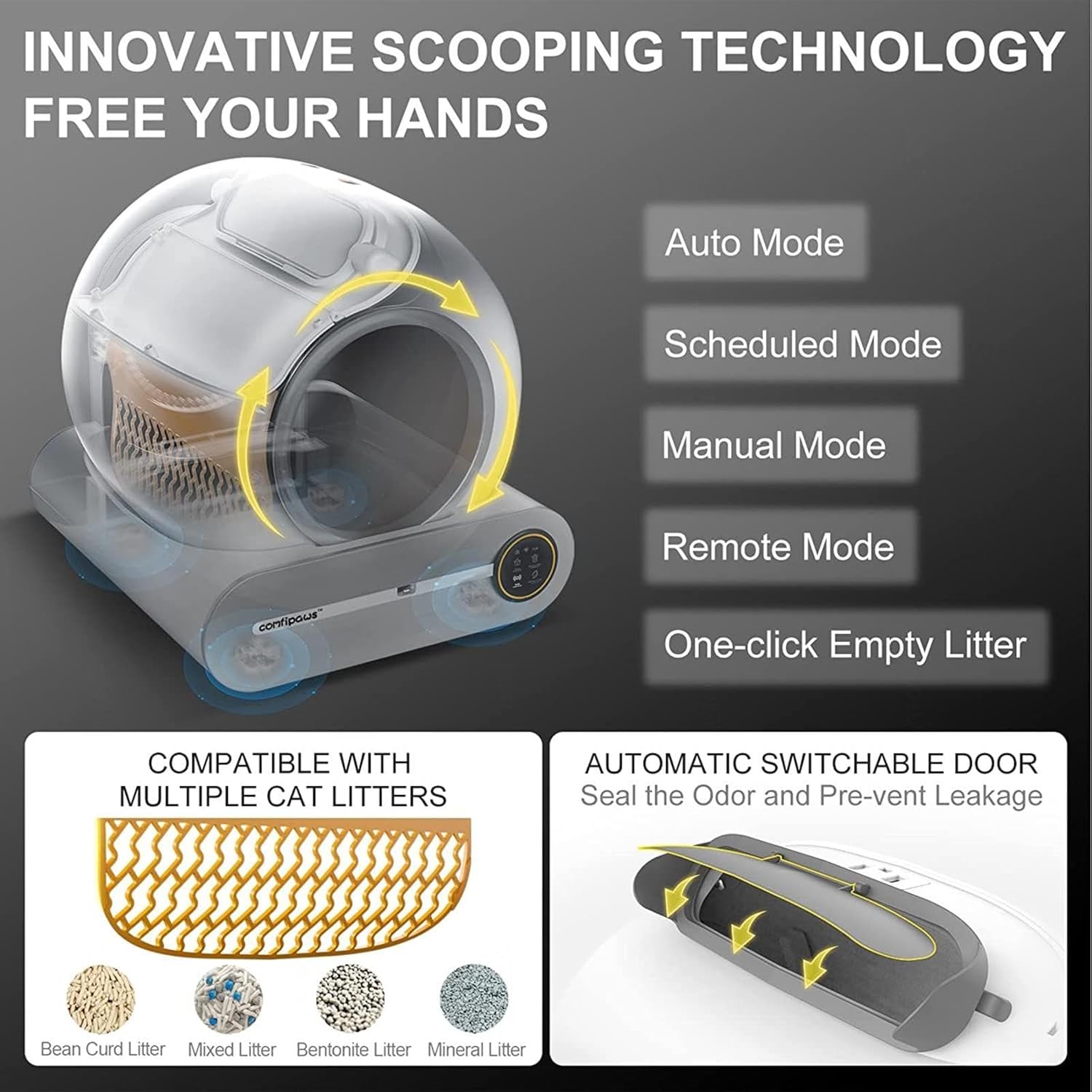 2. Características destacadas de Autolimpiable Arenero para Gatos 65 L + 9 L De Gran Capacidad, Control De App, Desodorante IóNico Areneros Automaticos Gatos, Arenero Gatos Cubierto para Varios Gatos