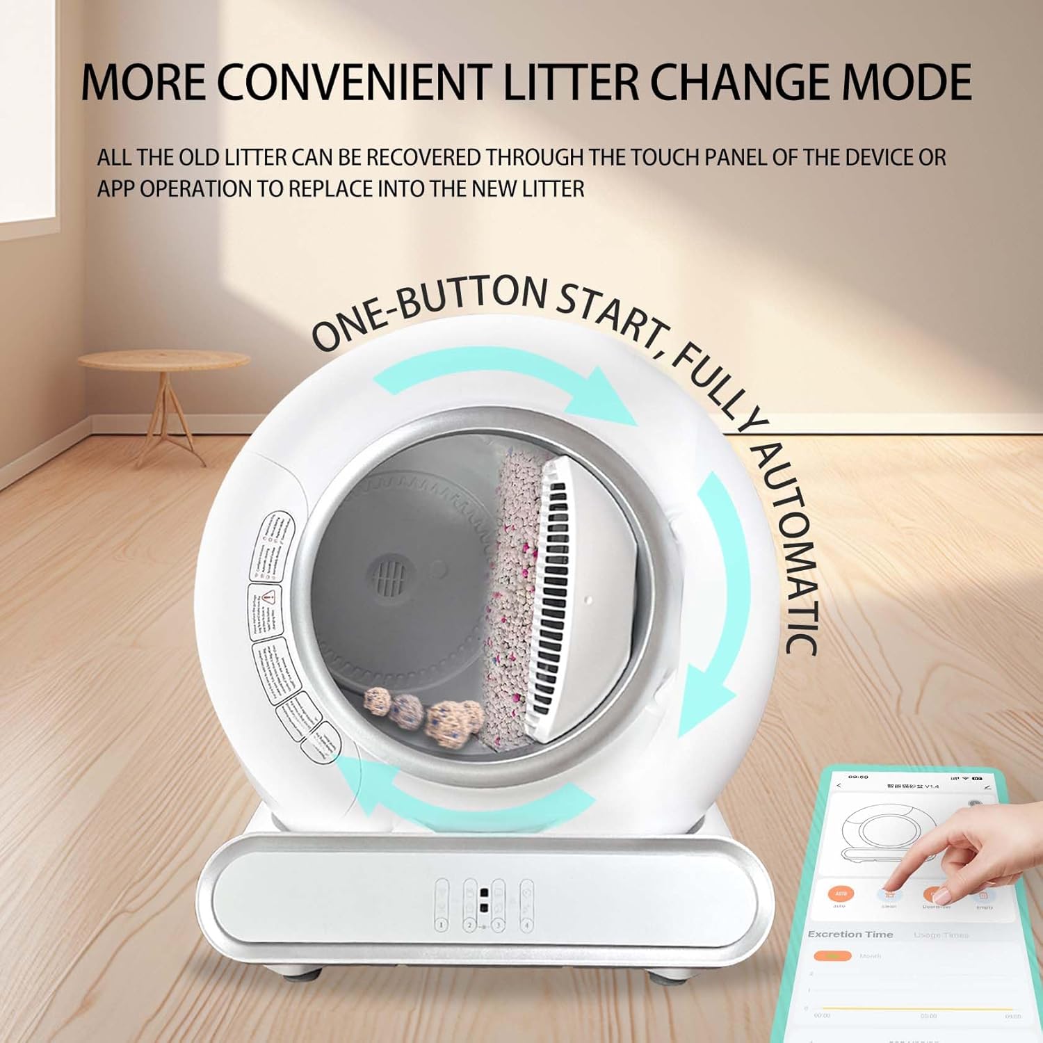 - Sistema de Autolimpieza: La caja se limpia automáticamente después de cada uso, eliminando la necesidad de limpiar manualmente.