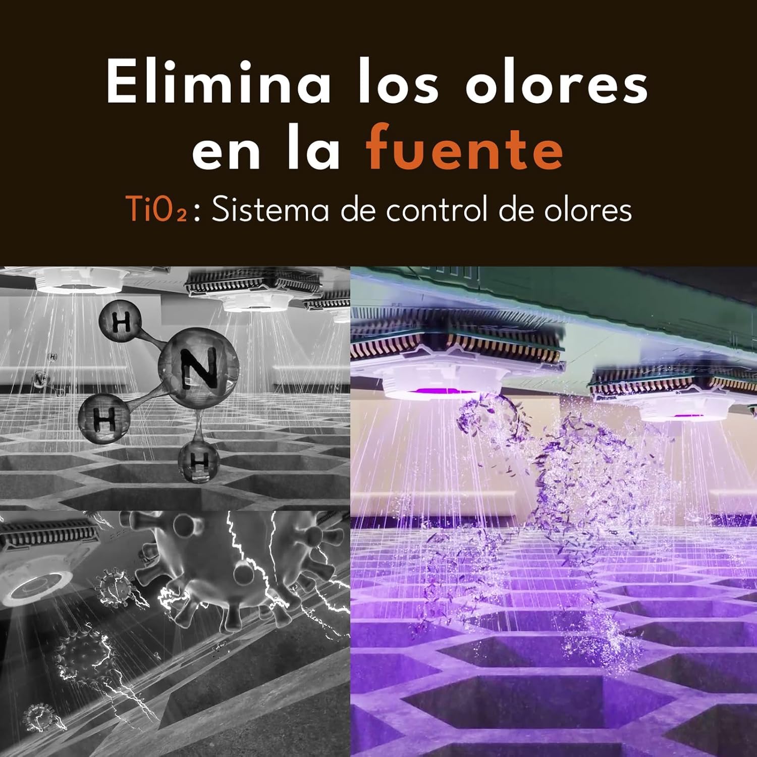 - Desodorización TiO2: Combate los olores de manera efectiva gracias a su sistema de desodorización en la fuente, garantizando un espacio fresco.