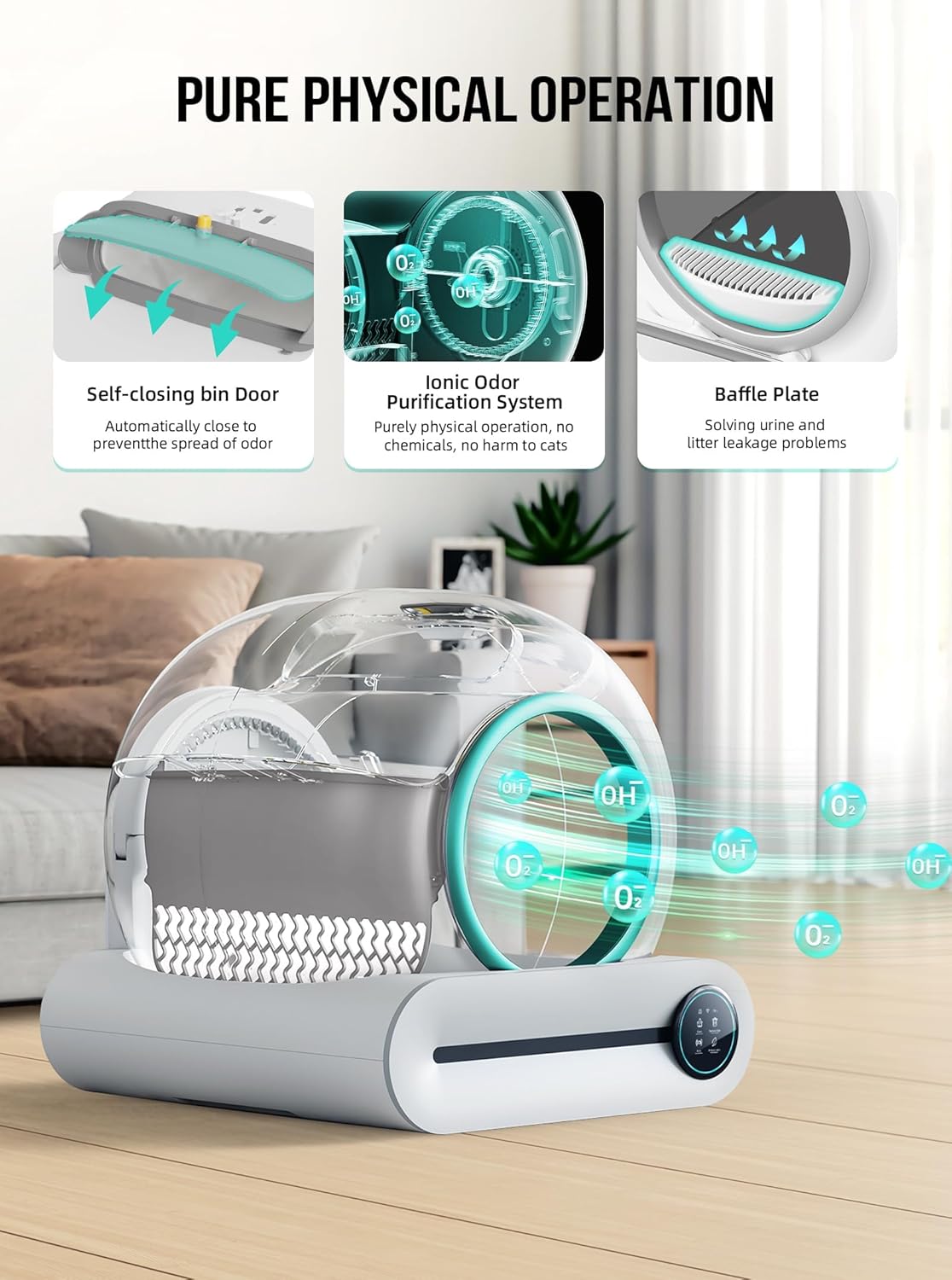- Ventajas clave: Reduce el olor y el desorden, mejora la salud de los gatos al mantener la arena limpia.
