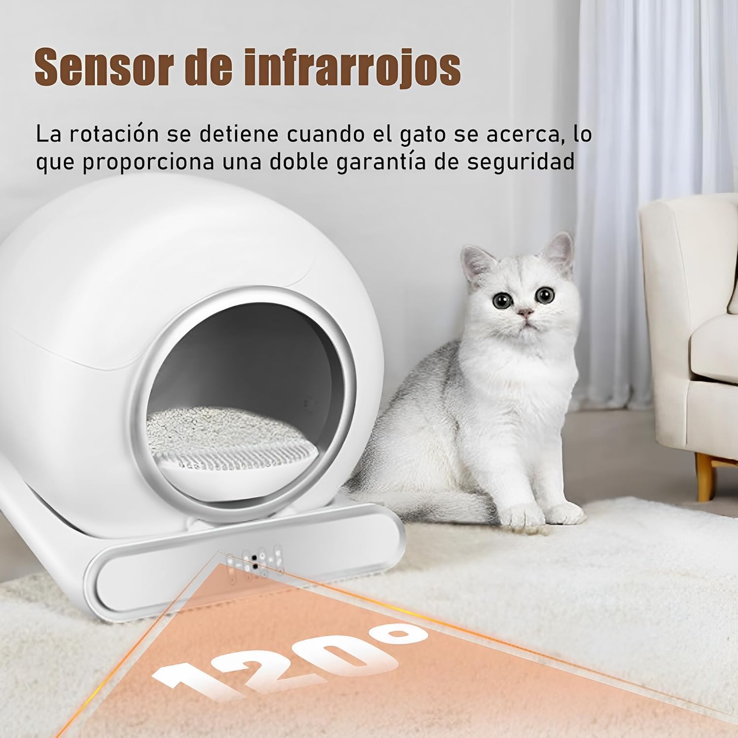 - Autolimpieza eficiente: Su sistema inteligente permite que el arenero se limpie solo tras cada uso, reduciendo la necesidad de intervenciones manuales.