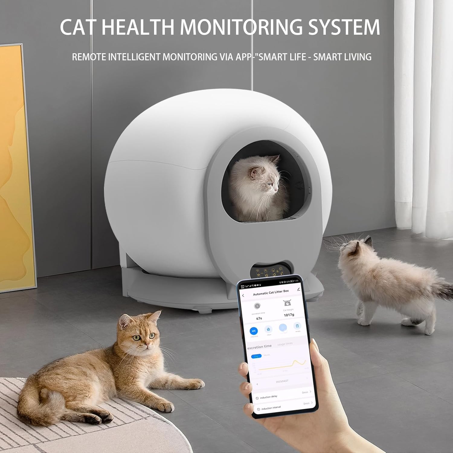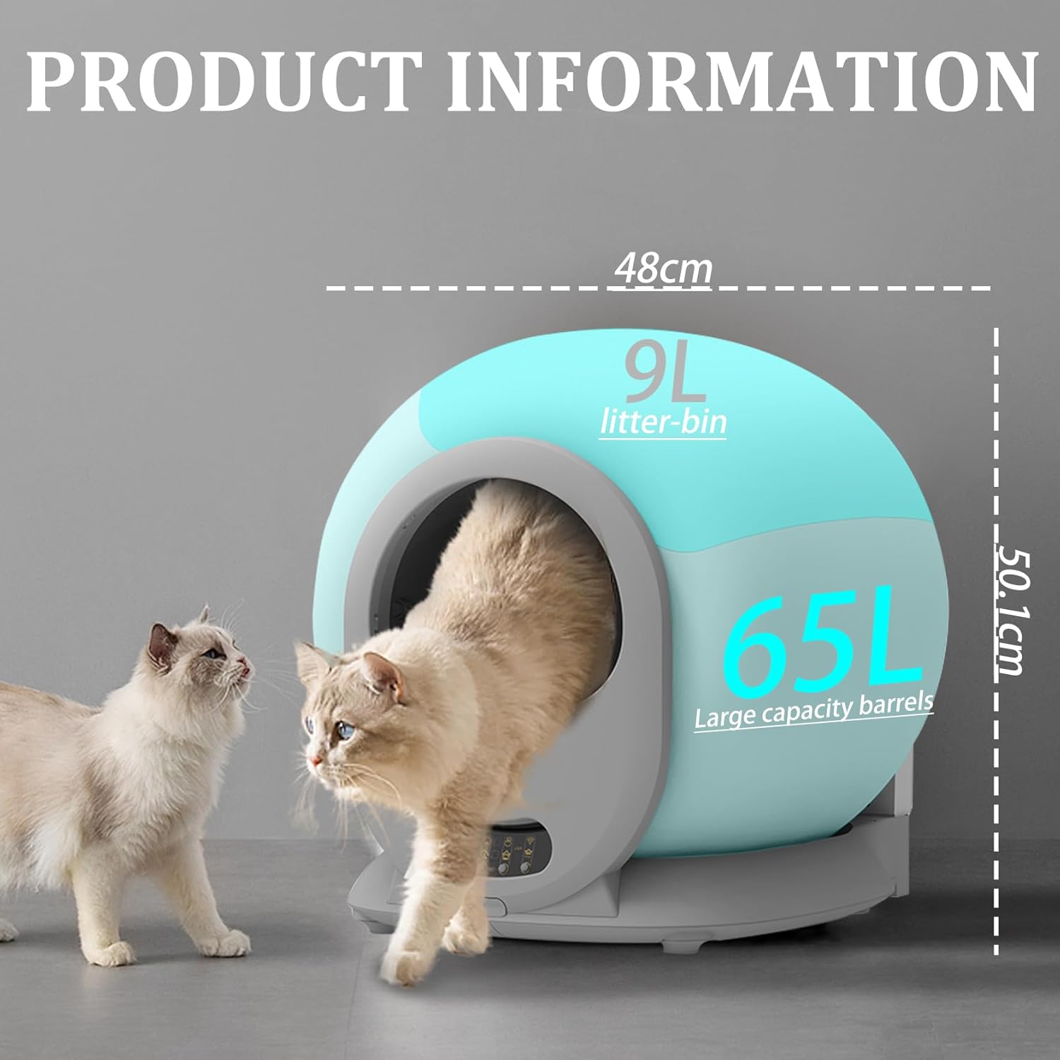 - Control Inteligente: Incluye sensores que detectan la presencia de los gatos para iniciar el ciclo de limpieza en el momento adecuado.