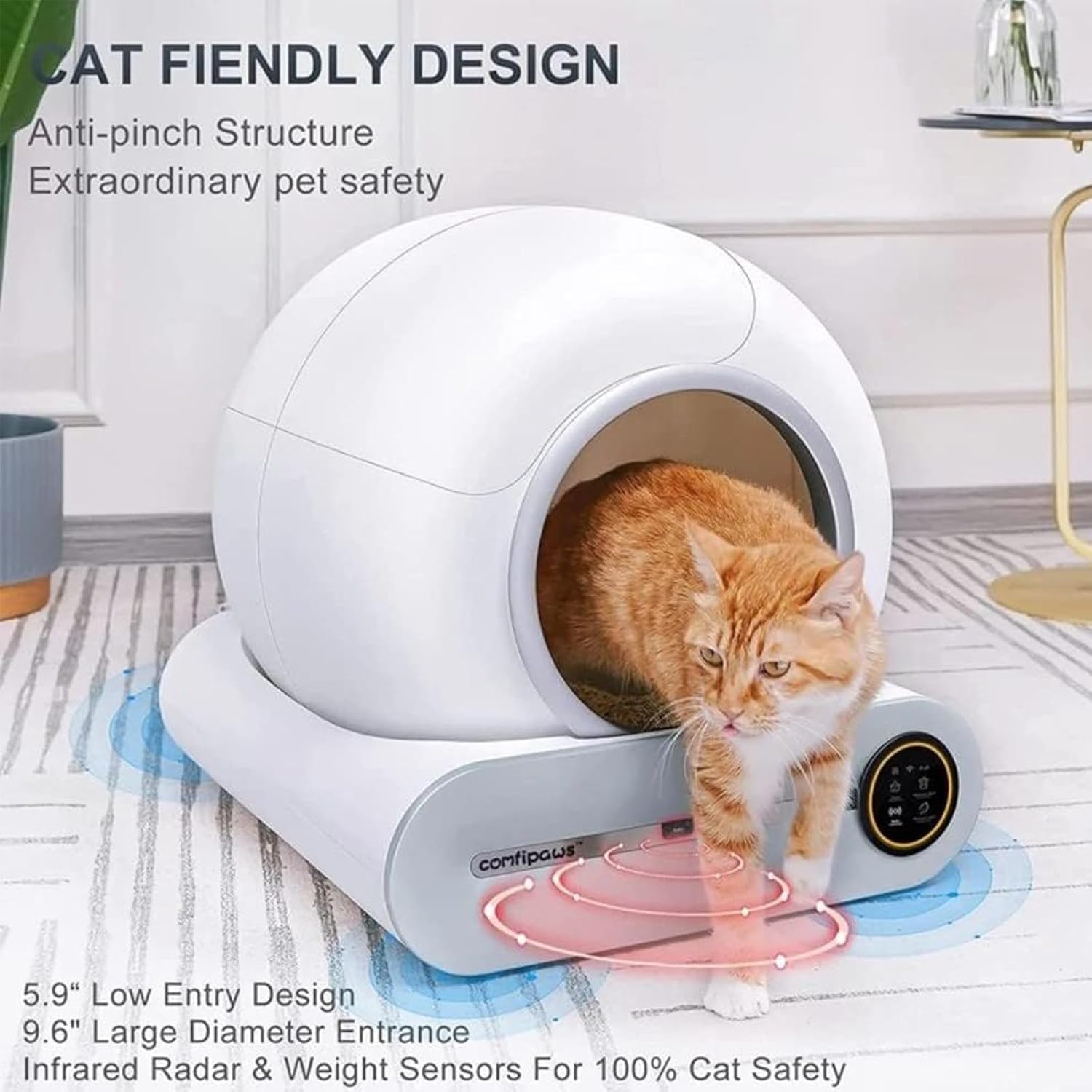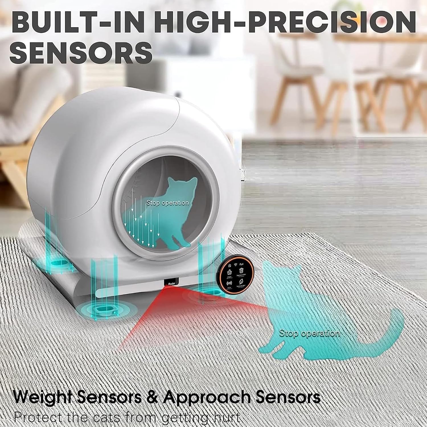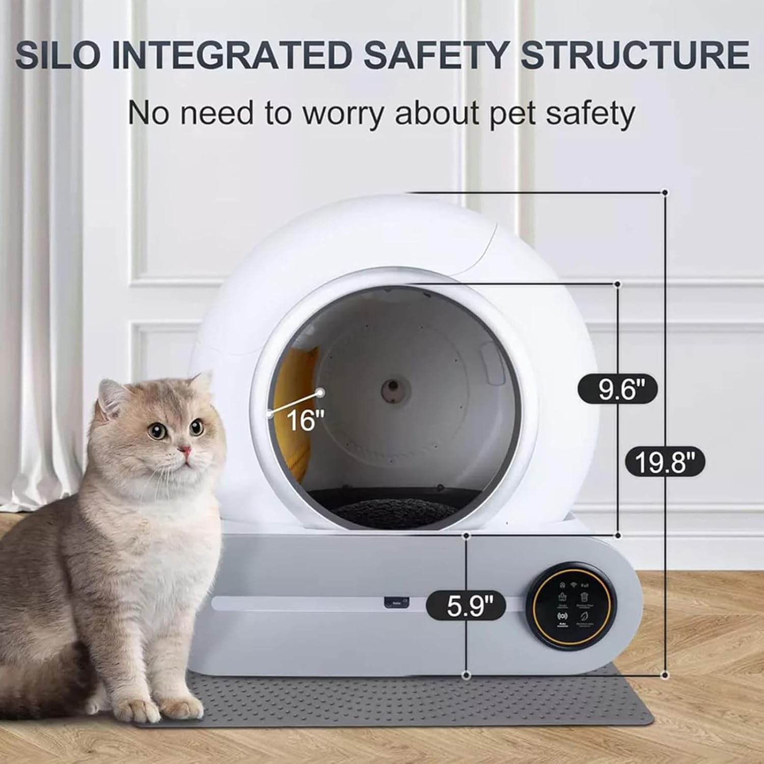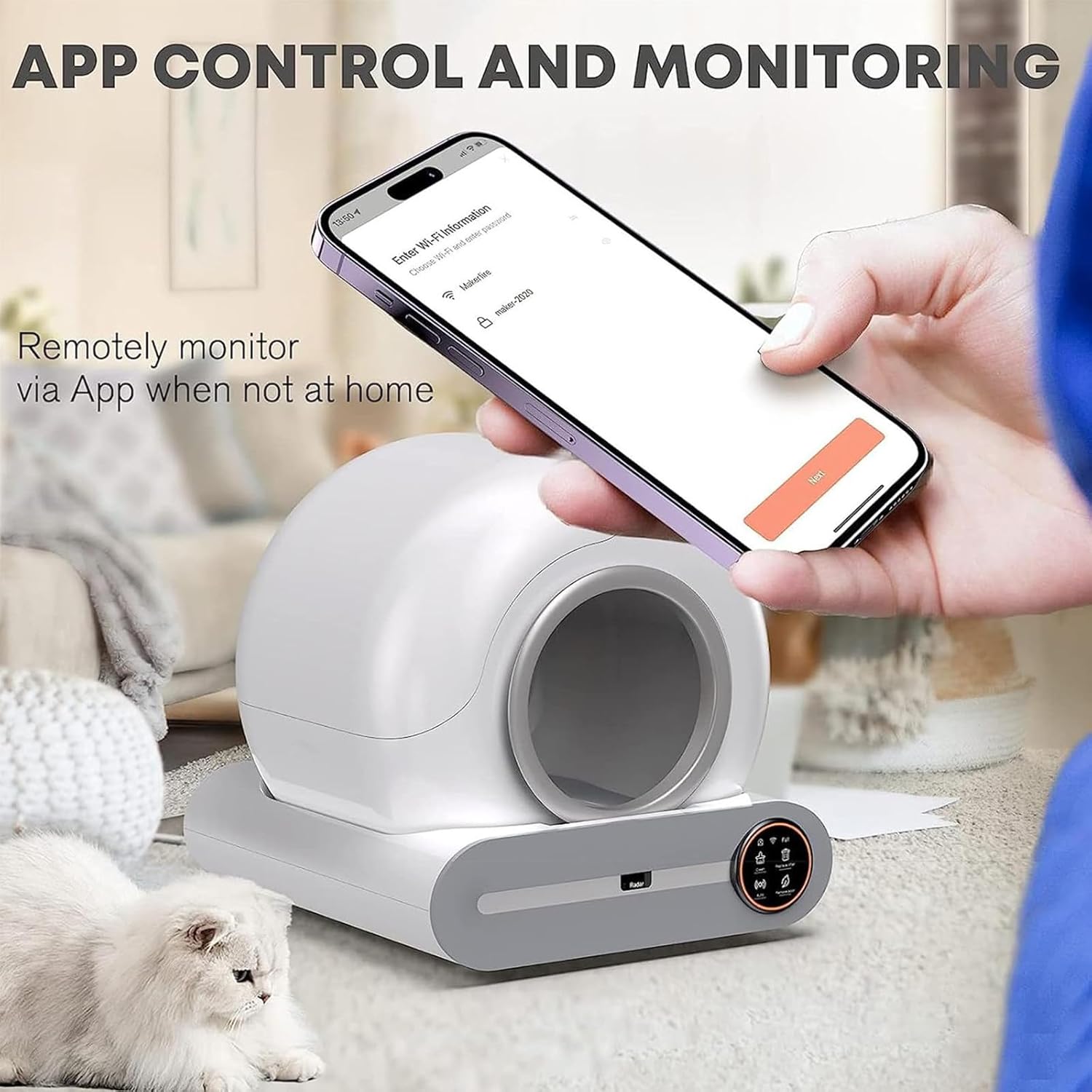- Control a través de App: Permite monitorear y gestionar el uso del arenero desde tu teléfono, facilitando la verificación de la caja y su condición.