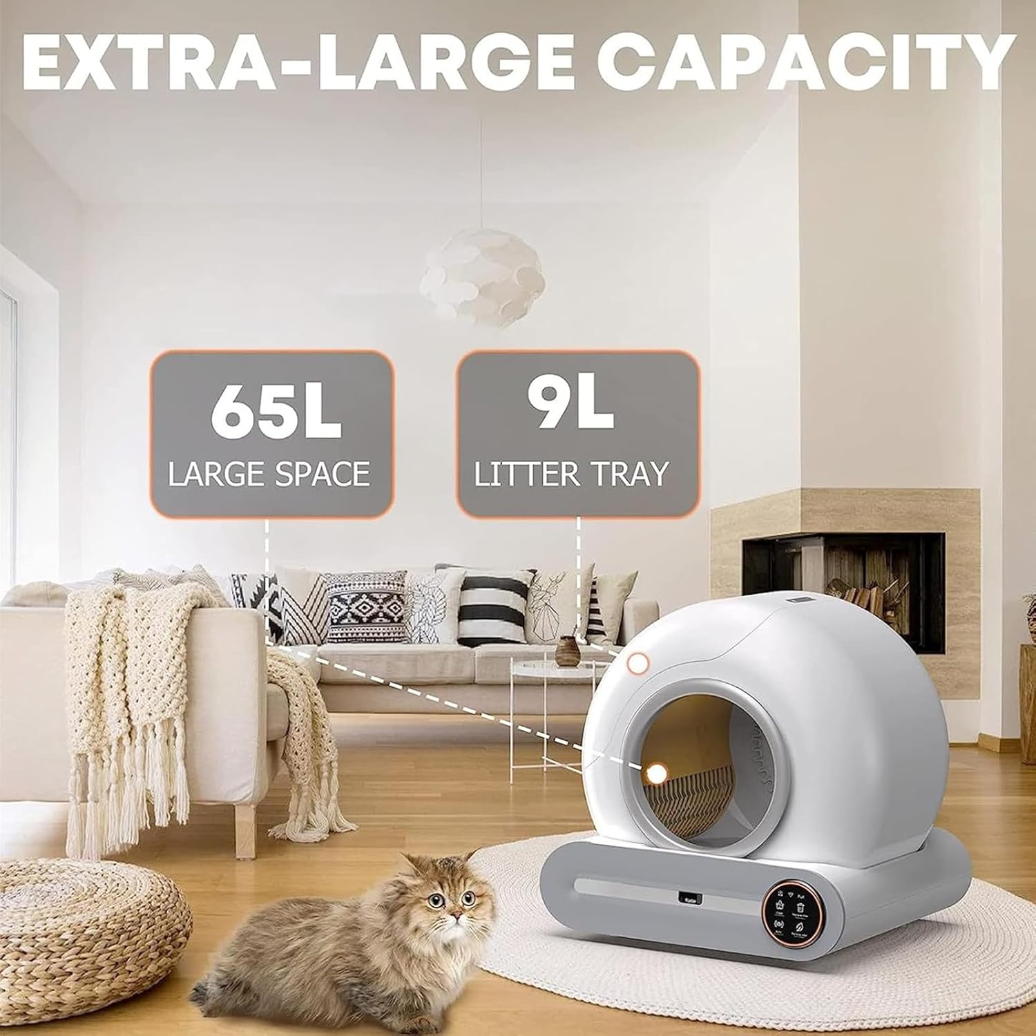 AOKLEY Autolimpiable Arenero para Gatos 65 L + 9 L De Gran Capacidad, Control De App, Desodorante IóNico Arenero Automatico Gatos, Arenero Inteligente para Gatos para Varios Gatos