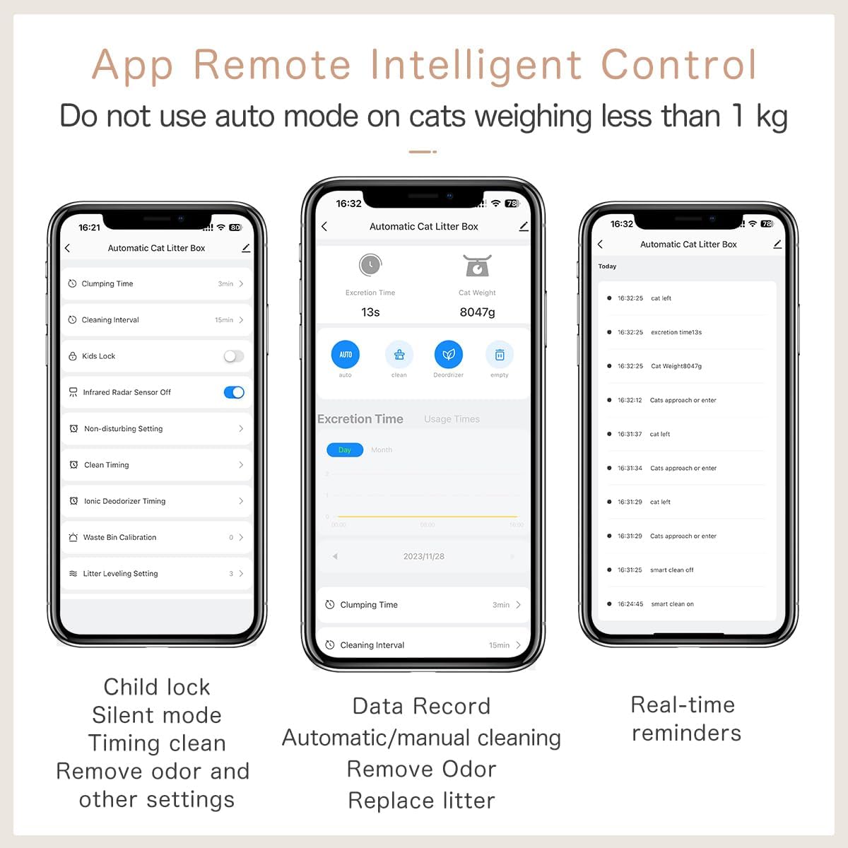 - Control APP: Permite gestionar el arenero desde tu smartphone. Puedes programar limpiezas y monitorizar el uso.