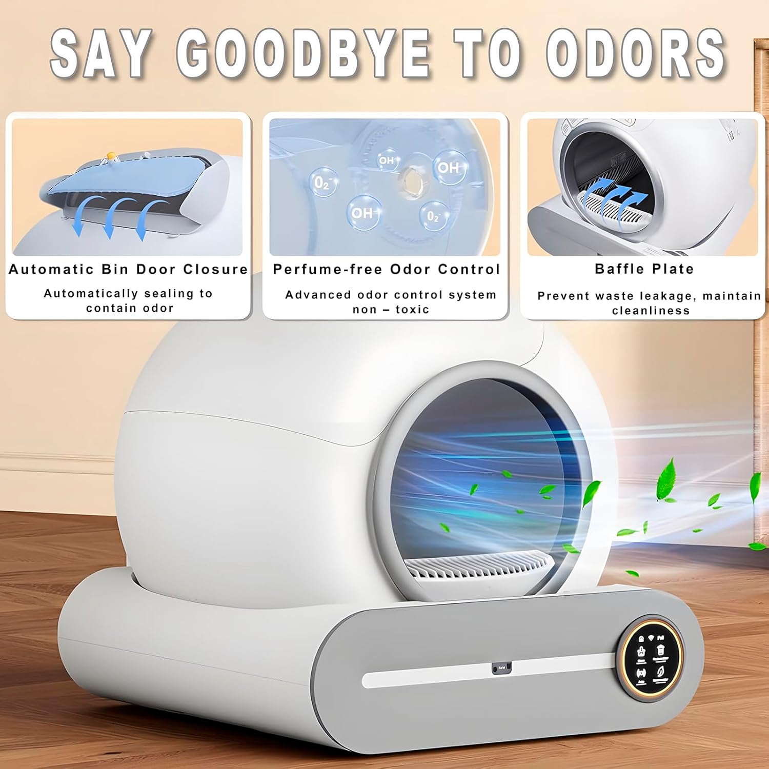 2. Características destacadas de Arenero Gatos Autolimpiable, 65L + 9L Caja Arena Gato con Bolsa Basura y Tapetes Arena, Eliminación de Olores, Control de App, Automatic Cat Litter Box para Varios Gatos