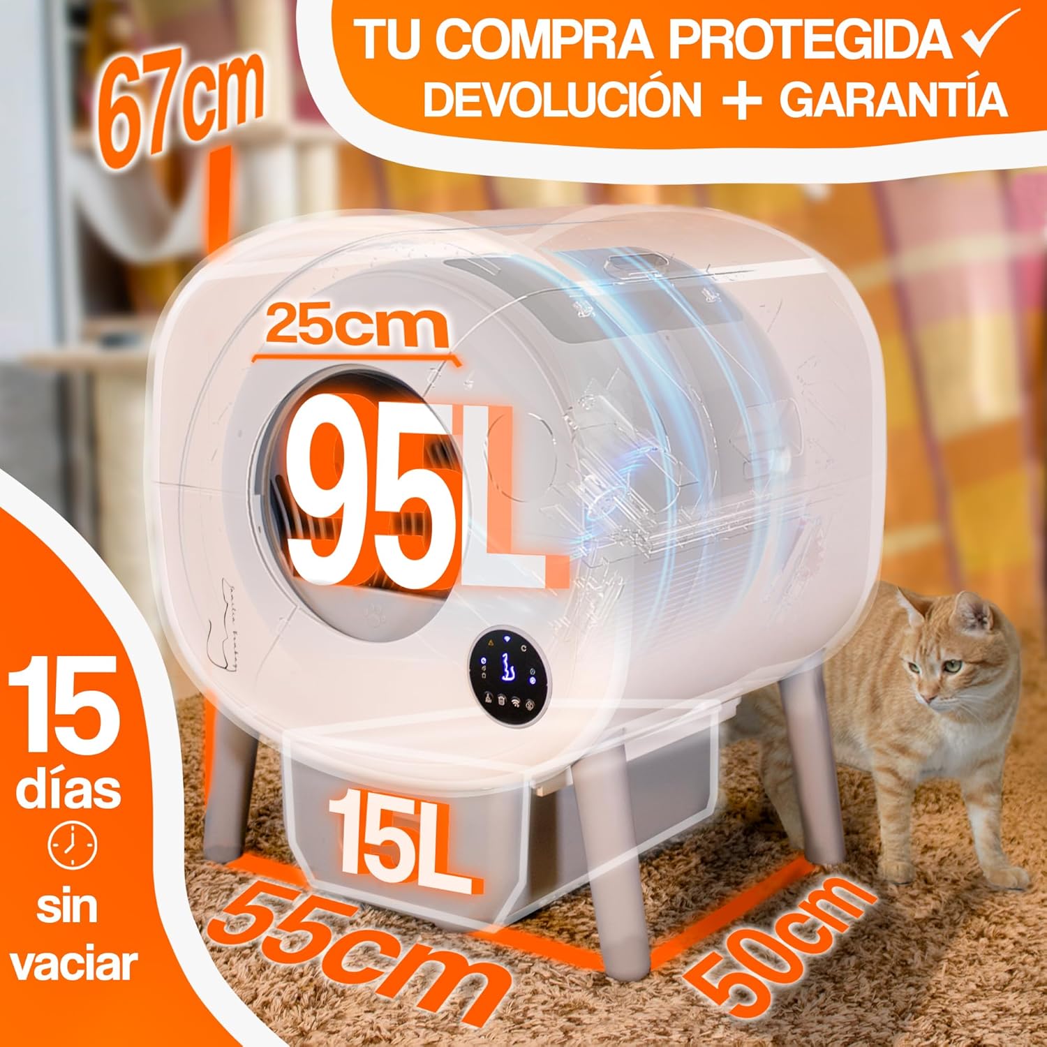 - Compatibilidad: Funciona con diferentes tipos de arena para gatos, incluidos los aglomerantes y de sílice.