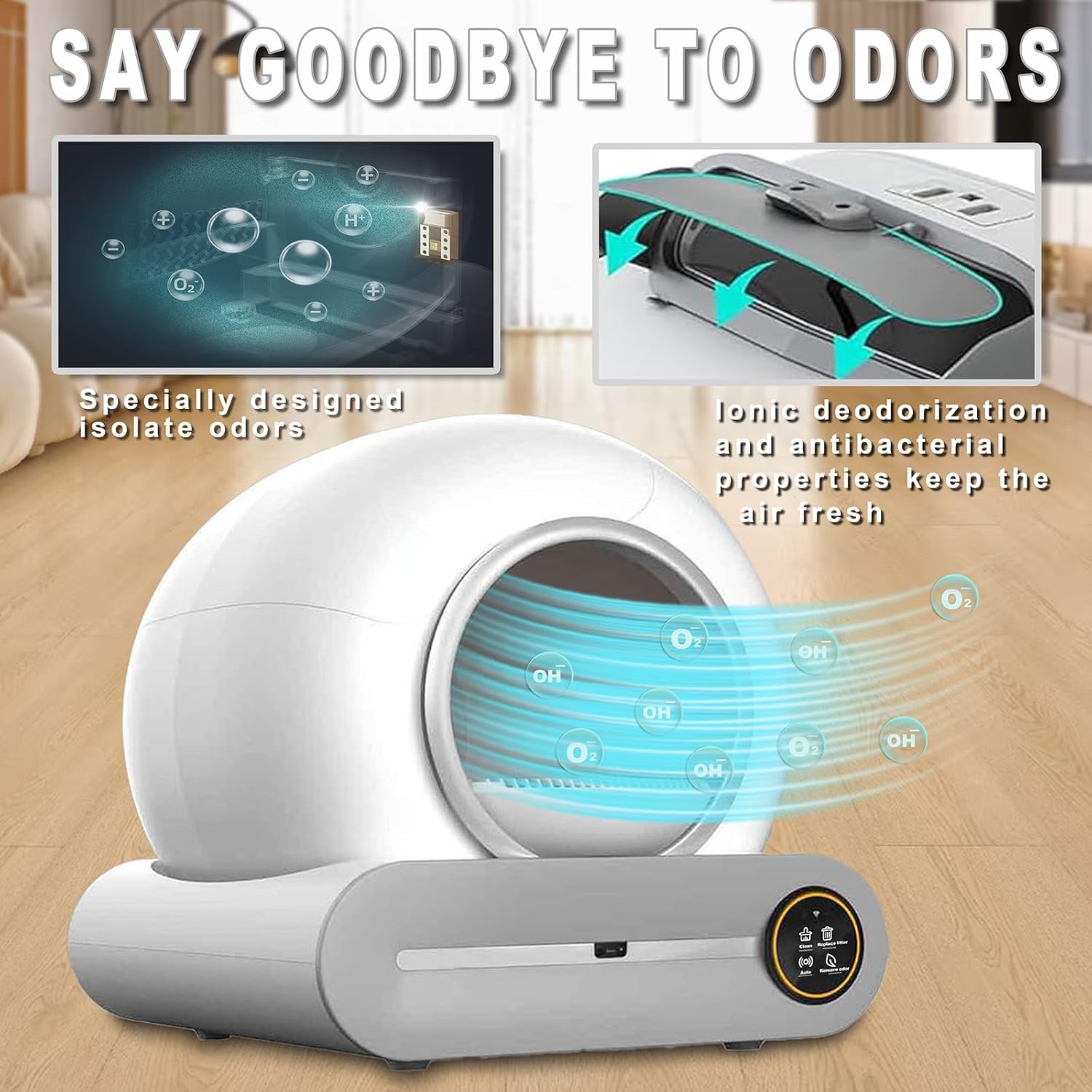 - Capacidad generosa: Con 65L de arena y 9L para residuos, es ideal para hogares con varios gatos, minimizando la frecuencia de cambios.