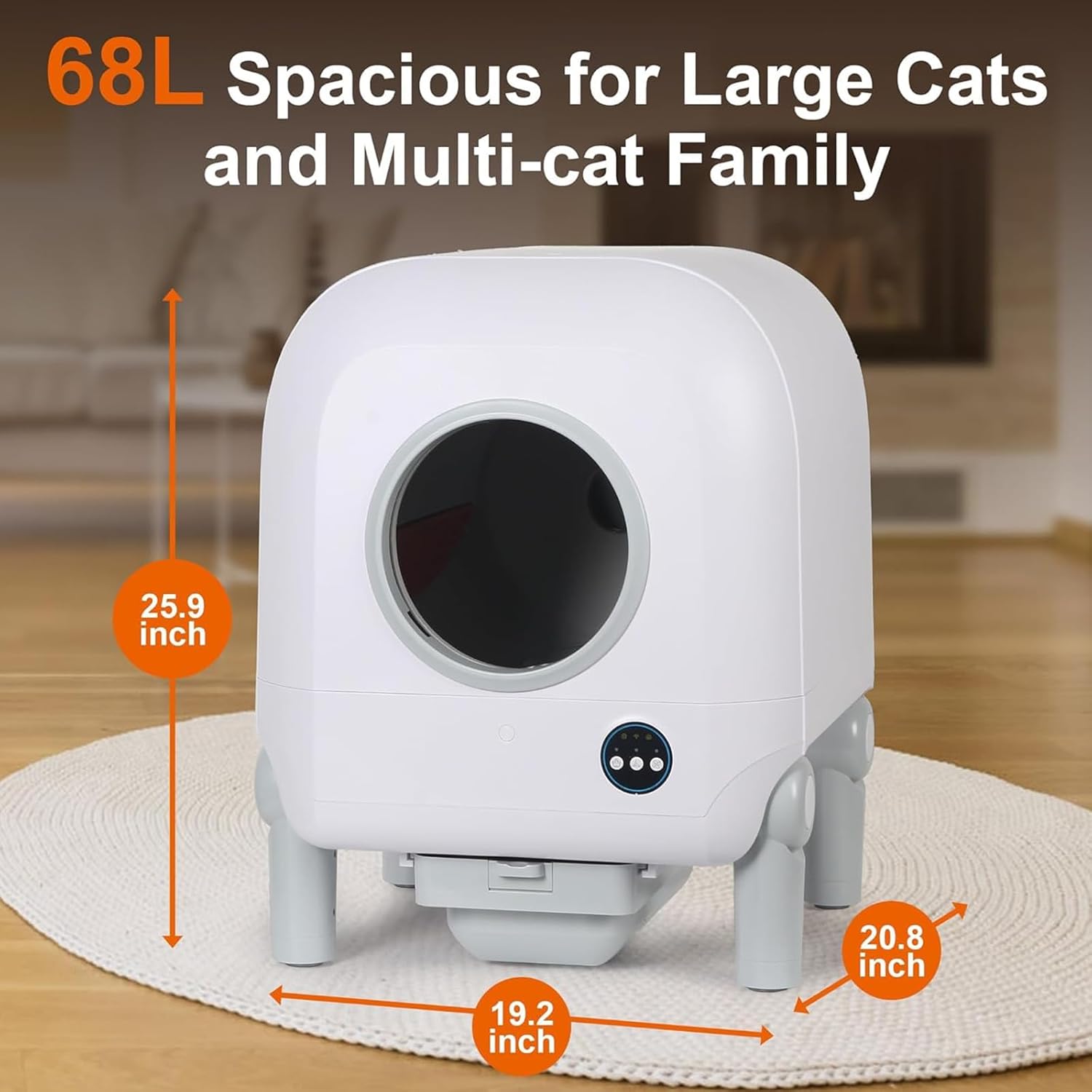 3. ¿Cuáles son las especificaciones técnicas de Self-Cleaning Cat Litter Box, Cat Toilet, Self-Cleaning Cat Litter, Secure/Odor Elimination/APP Control/68L Maximum Capacity, for Multiple Cats