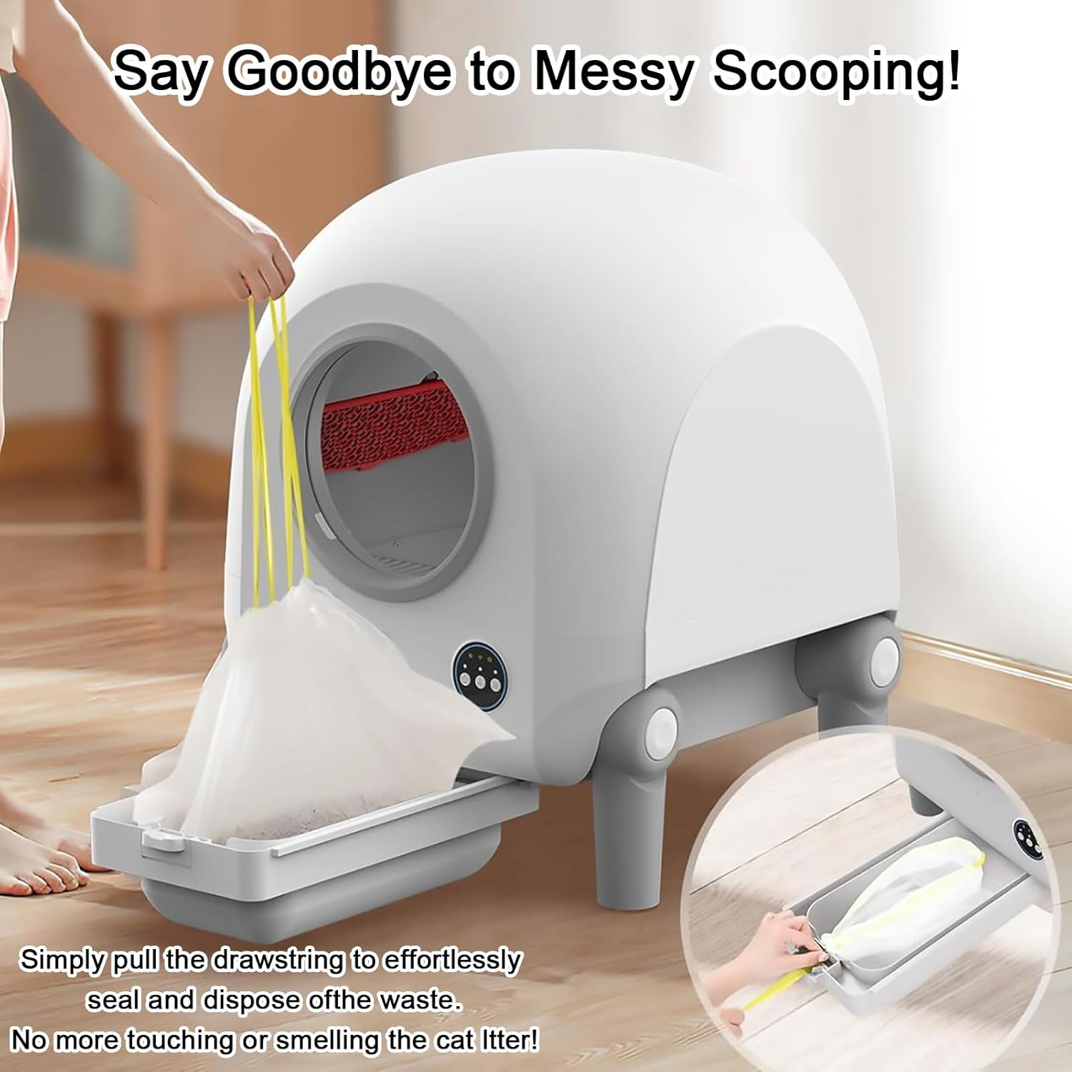 - Protección de seguridad: Incluye sensores que evitan que el mecanismo de limpieza se active cuando un gato está dentro, garantizando su seguridad.