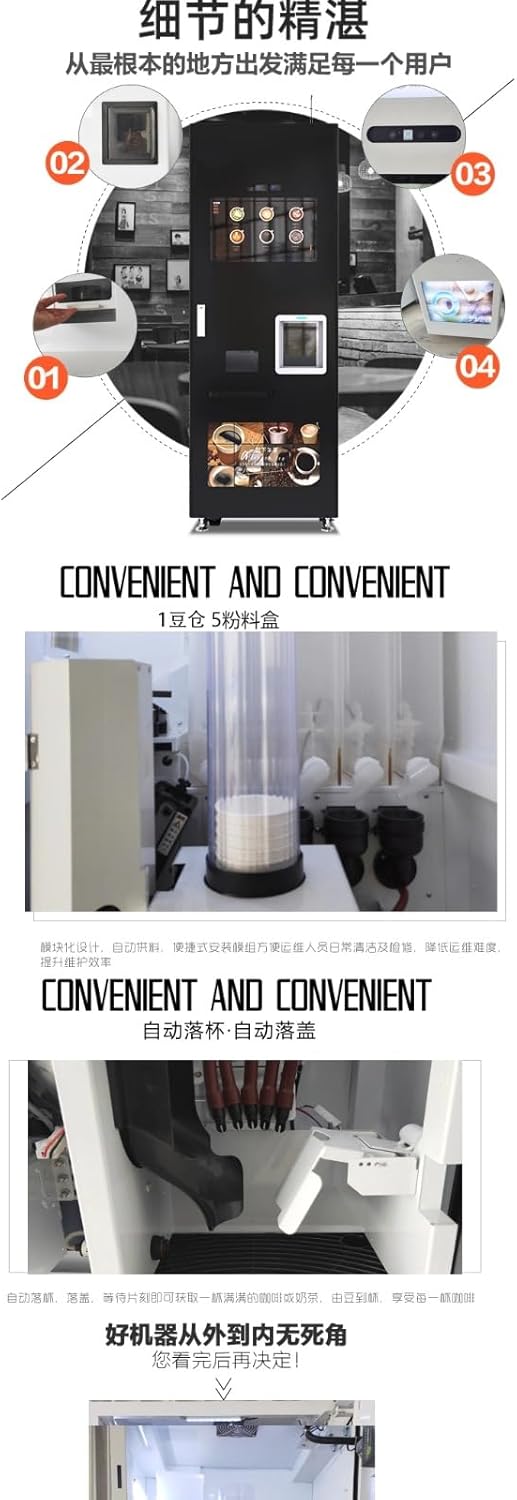 La cafetera automática de autoservicio con amoladora integrada se presenta como una solución ideal para los amantes del café que buscan comodidad, calidad y versatilidad en una sola máquina. Con su tecnología de prensado a 15 barras, permite extraer sabor y aroma de los granos de café de manera óptima, garantizando una taza deliciosa en cada uso. Su control de visualización táctil facilita la selección de opciones y personalizaciones, haciendo que la preparación del café sea un acto sencillo y rápido. Además, su función de autolimpieza asegura que el mantenimiento no sea un problema, permitiendo disfrutar de un café fresco y sabroso todos los días.