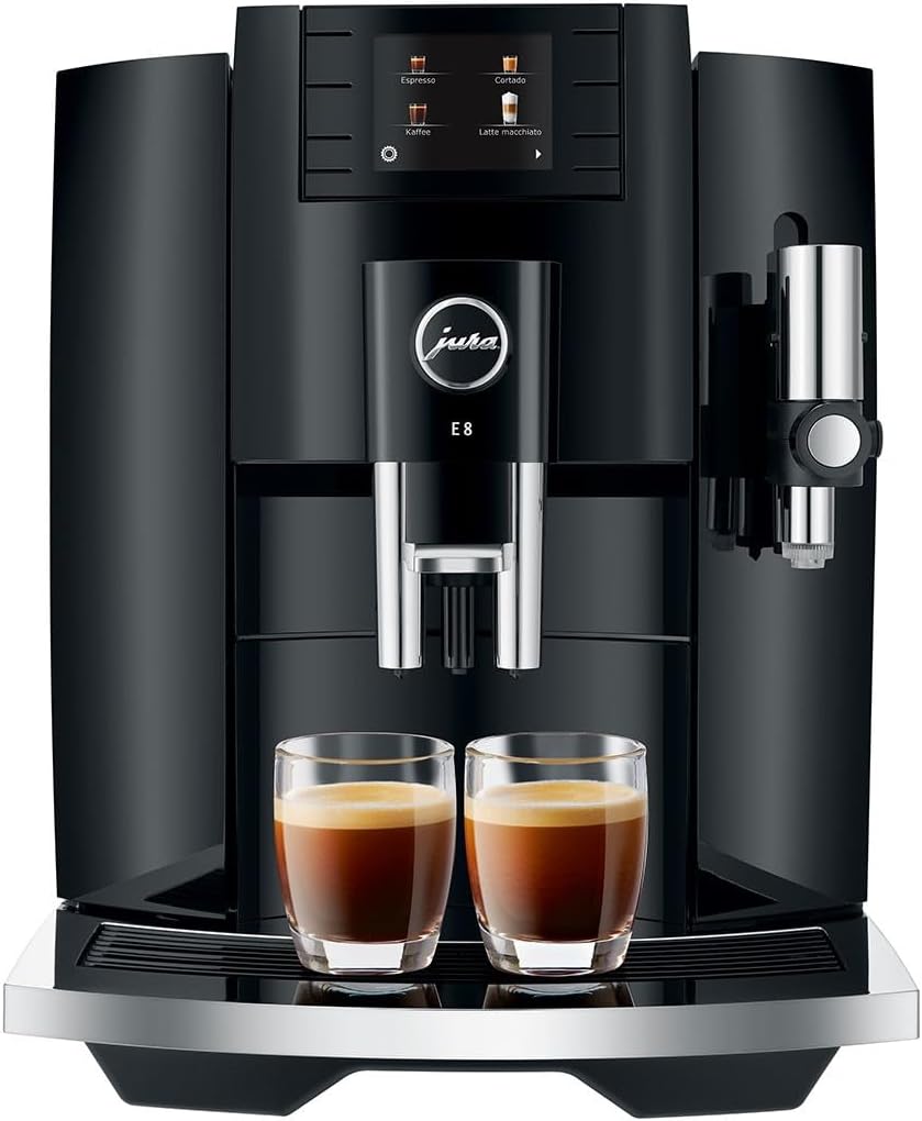 8. Precio y dónde comprar jura Cafetera superautomática E8 Piano Black, 1450 W, 1.9l, 15 Bar, 2 Tazas, Capacidad café 280g, Negro al mejor precio