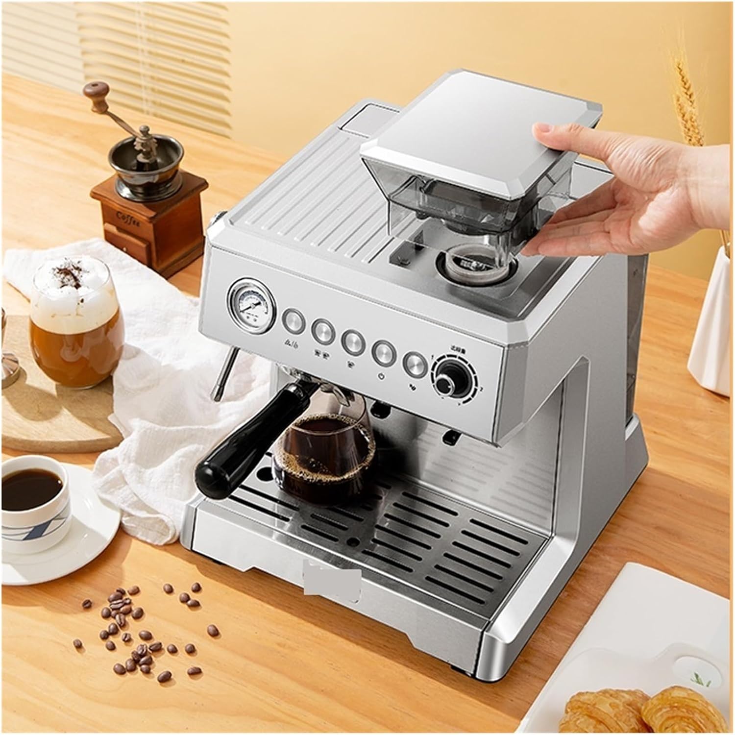 Espresso Semiautomático GLJTUO 20 Bar con Molinillo y Vaporizador de Leche