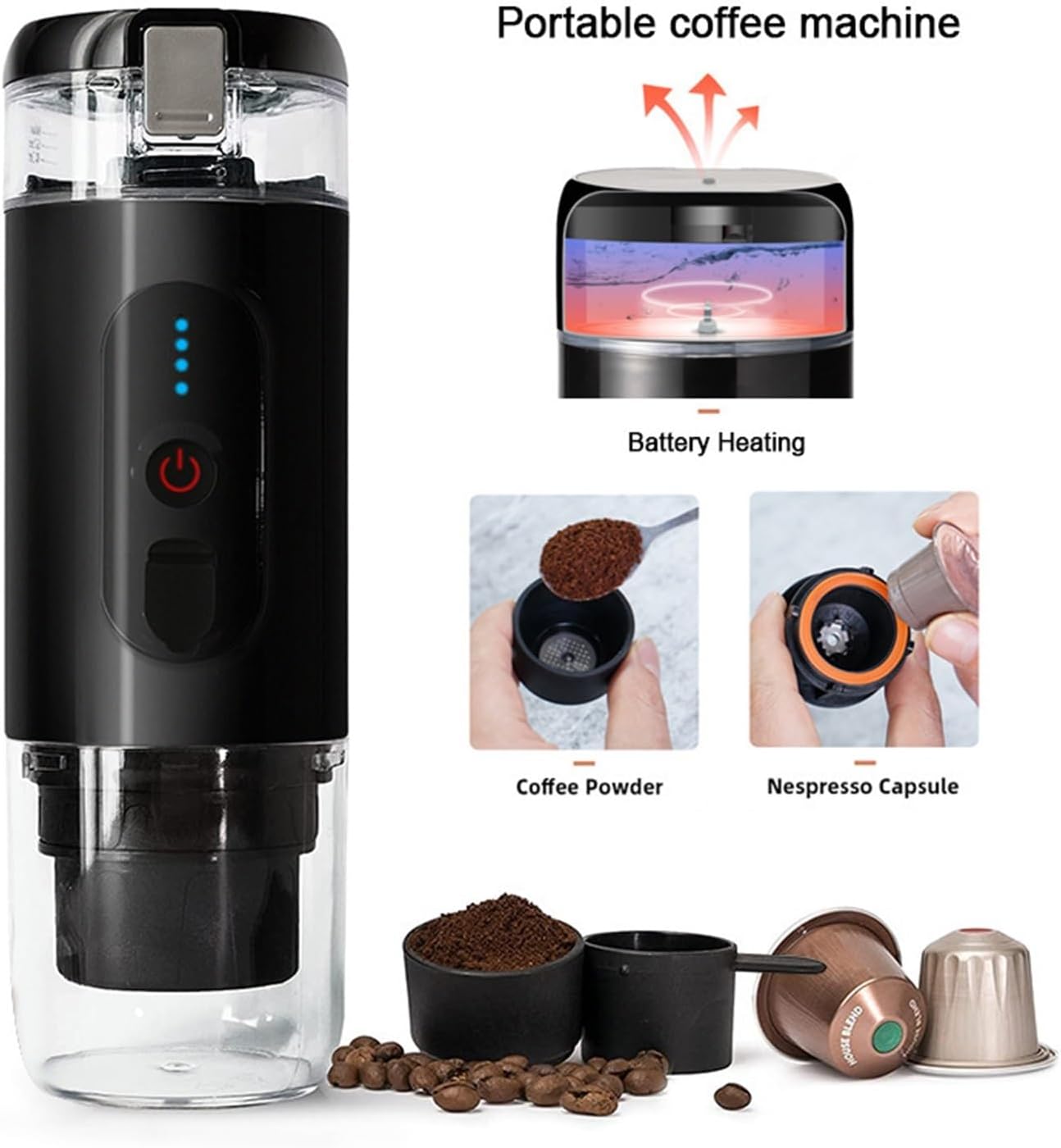 5. Pros y contras de XiVue Portable Capsule Coffee Maker Semi Automatic Heating Travel Car Home Small Coffee Maker Battery Heating Outdoor Coffee Machine (Color : White) (Black)
