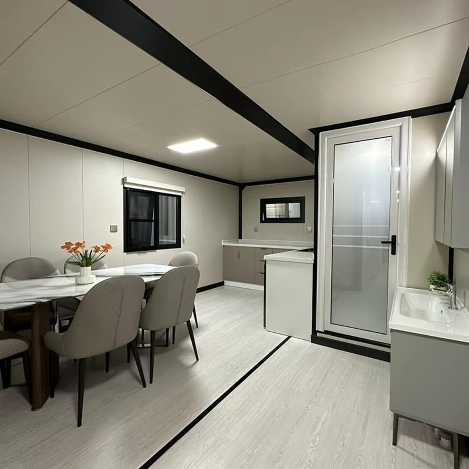 Además, estas casas cuentan con tres habitaciones, lo que las convierte en una opción ideal para familias o grupos. Pueden usarse tanto como habitaciones principales como oficiales, lo que las hace perfectas para el trabajo remoto. Las ventanas amplias garantizan una excelente entrada de luz natural, creando un ambiente acogedor y luminoso.
