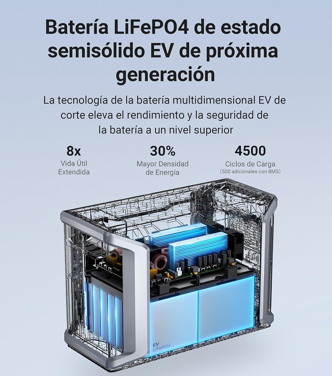 Batería de LiFePO4: Esta tecnología proporciona una mayor durabilidad y eficiencia en comparación con las baterías tradicionales. Además, ofrece hasta 4500 ciclos de carga, lo cual es ideal para usuarios que requieren un rendimiento constante.