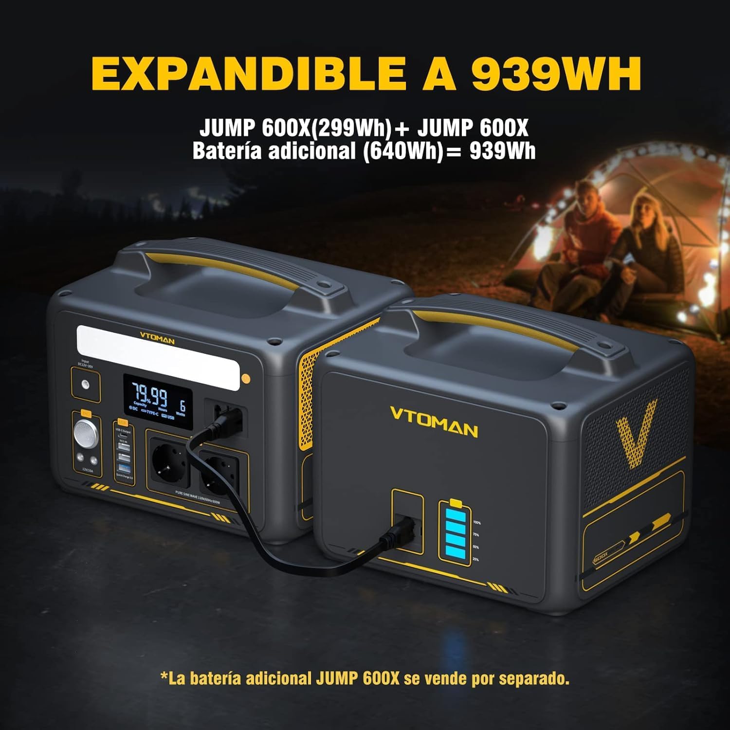 - Rendimiento: Potencia de salida de 600W y capacidad de 299Wh, ampliable a 939Wh.