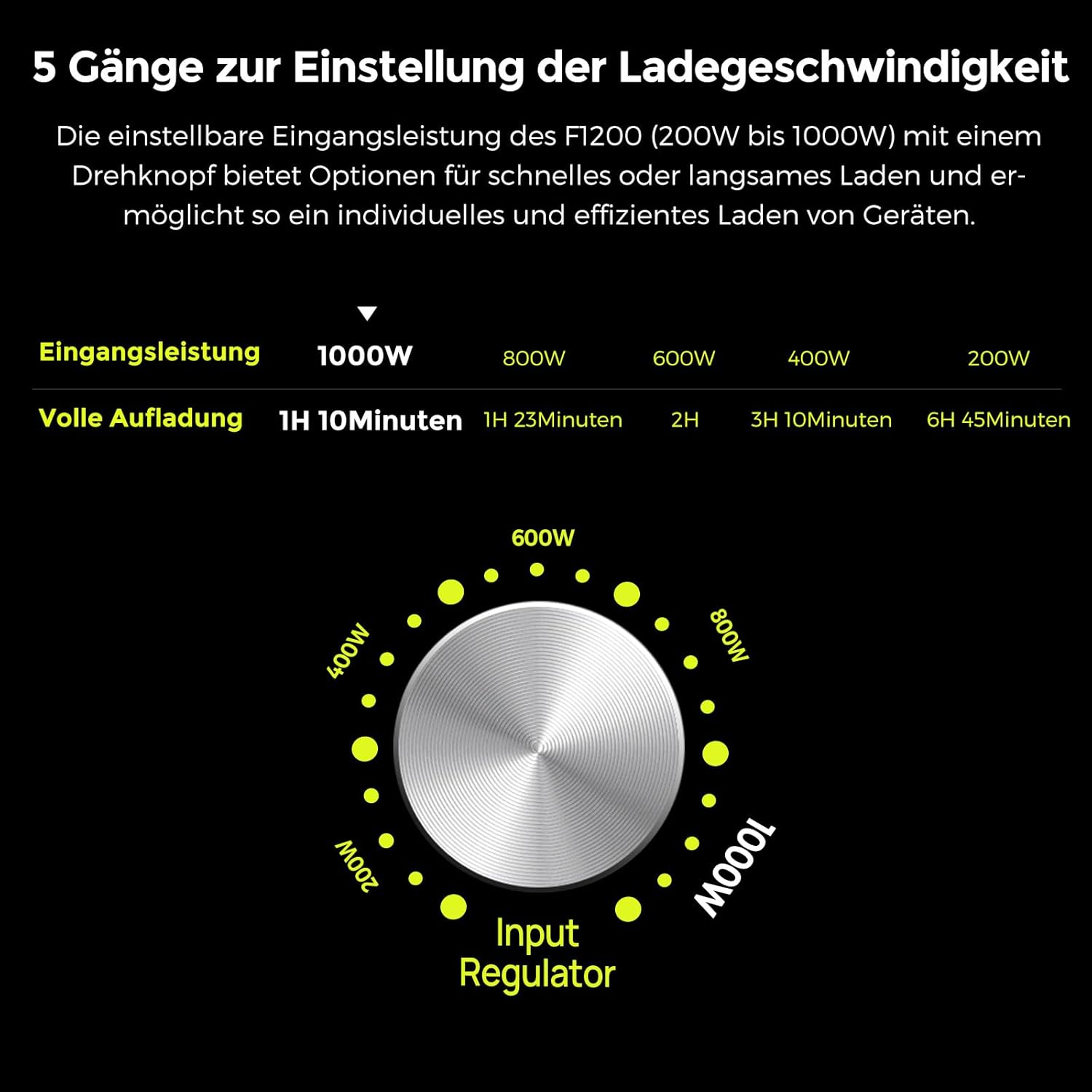 FOSSIBOT F1200 – Estación de energía portátil de 1200 W con panel solar de 200 W, generador solar de 1024 Wh (pico de 2400 W), batería LiFePO4, 220 V-240 V, panel solar plegable con USB, IP65