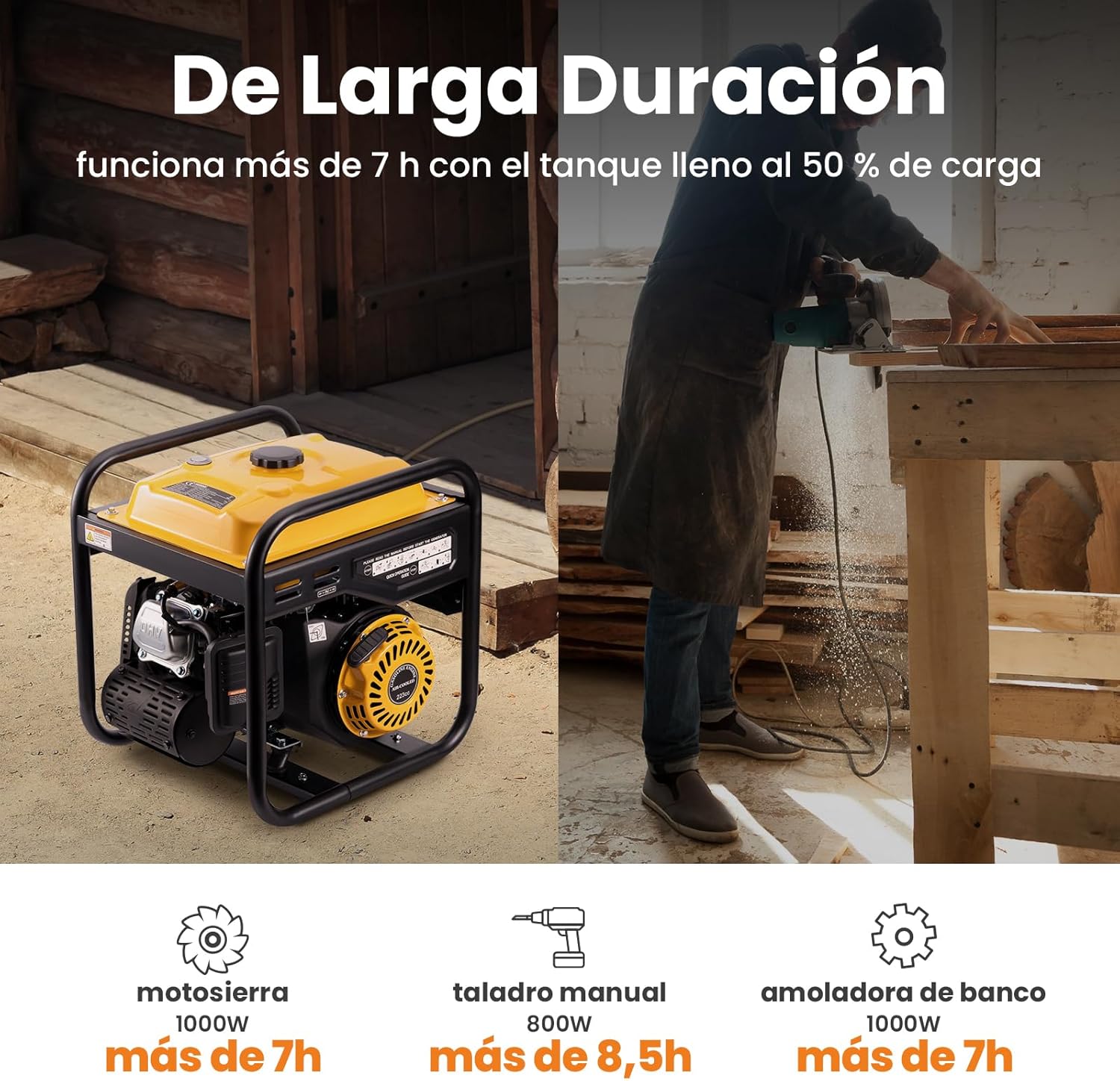 - Rango de funcionamiento: Ideal para camping, herramientas eléctricas y situaciones de emergencia.