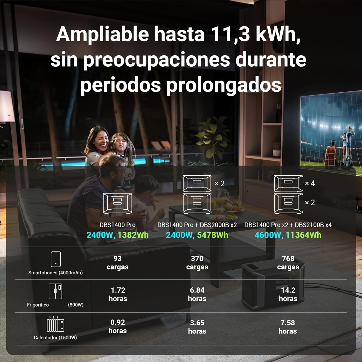Al comparar la Dabbsson DBS1400Pro con otras estaciones de energía portátiles, se destacan las siguientes características: