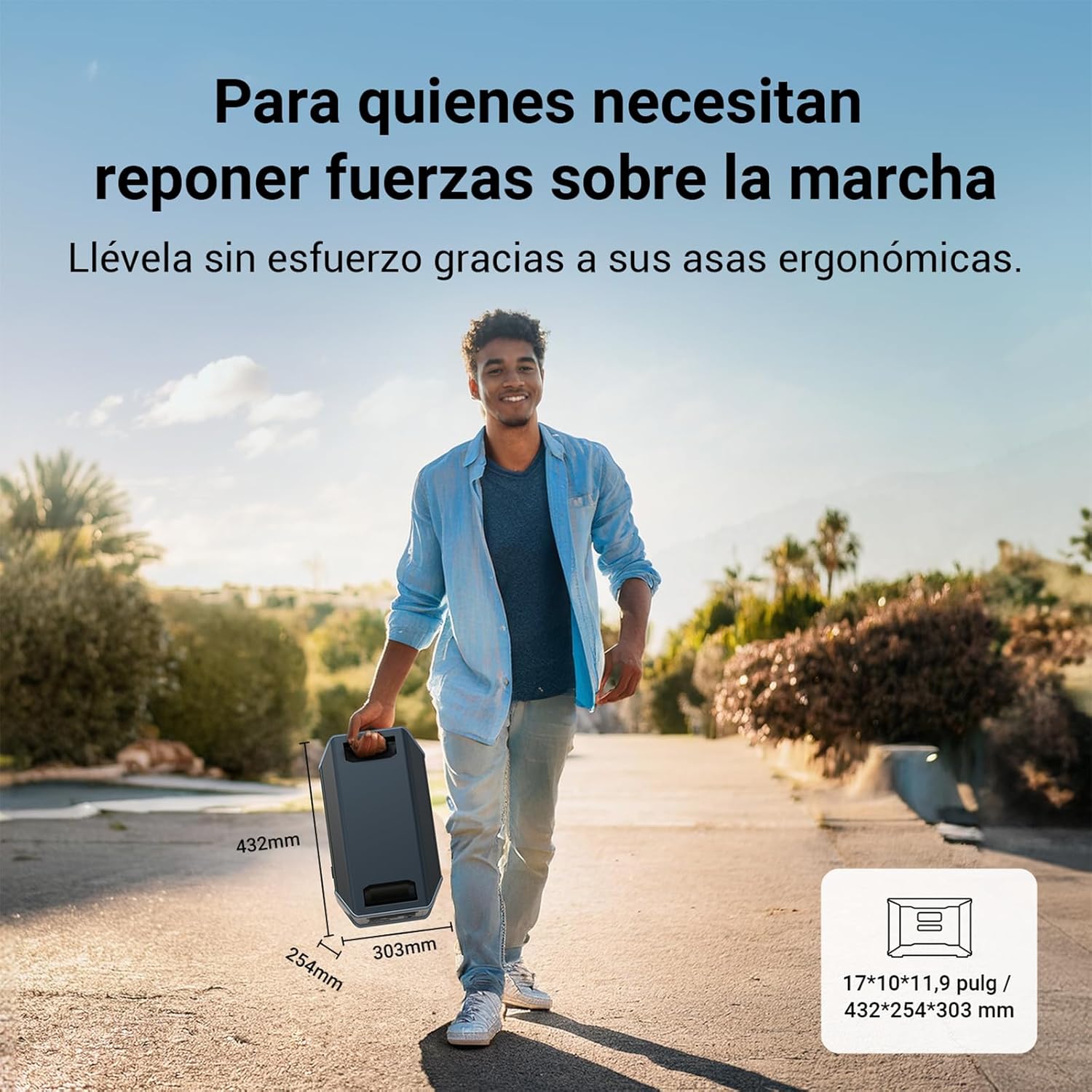 - Energía Solar: Compatible con paneles solares, lo que facilita la carga durante actividades al aire libre y ayuda a reducir la dependencia de la red eléctrica.