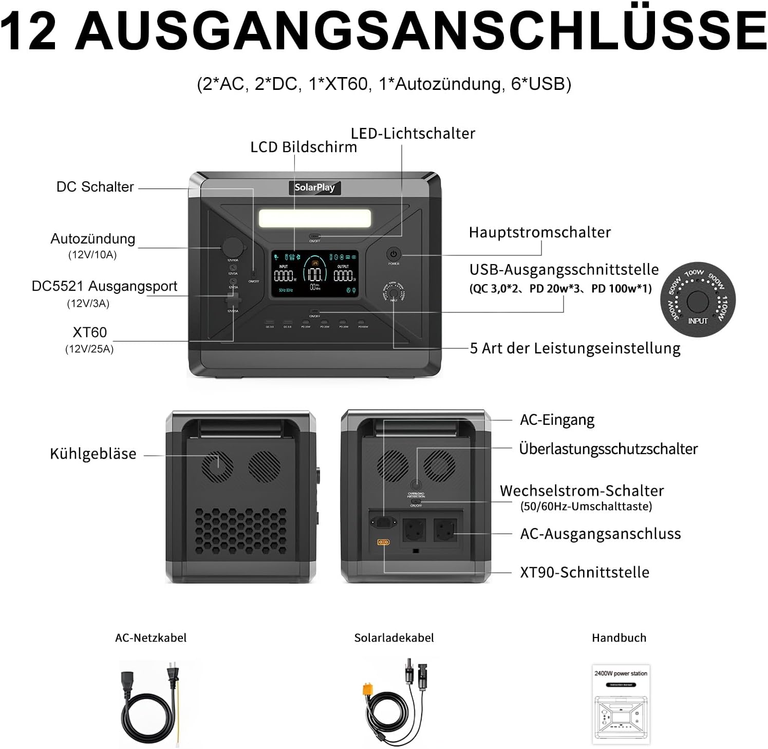 2. Características destacadas de Estación de energía portátil estación generador Solar, con 12 Conexiones de Salida, generador de energía Solar para Camping, con 5 años de garantía (Q2501+Transporte)