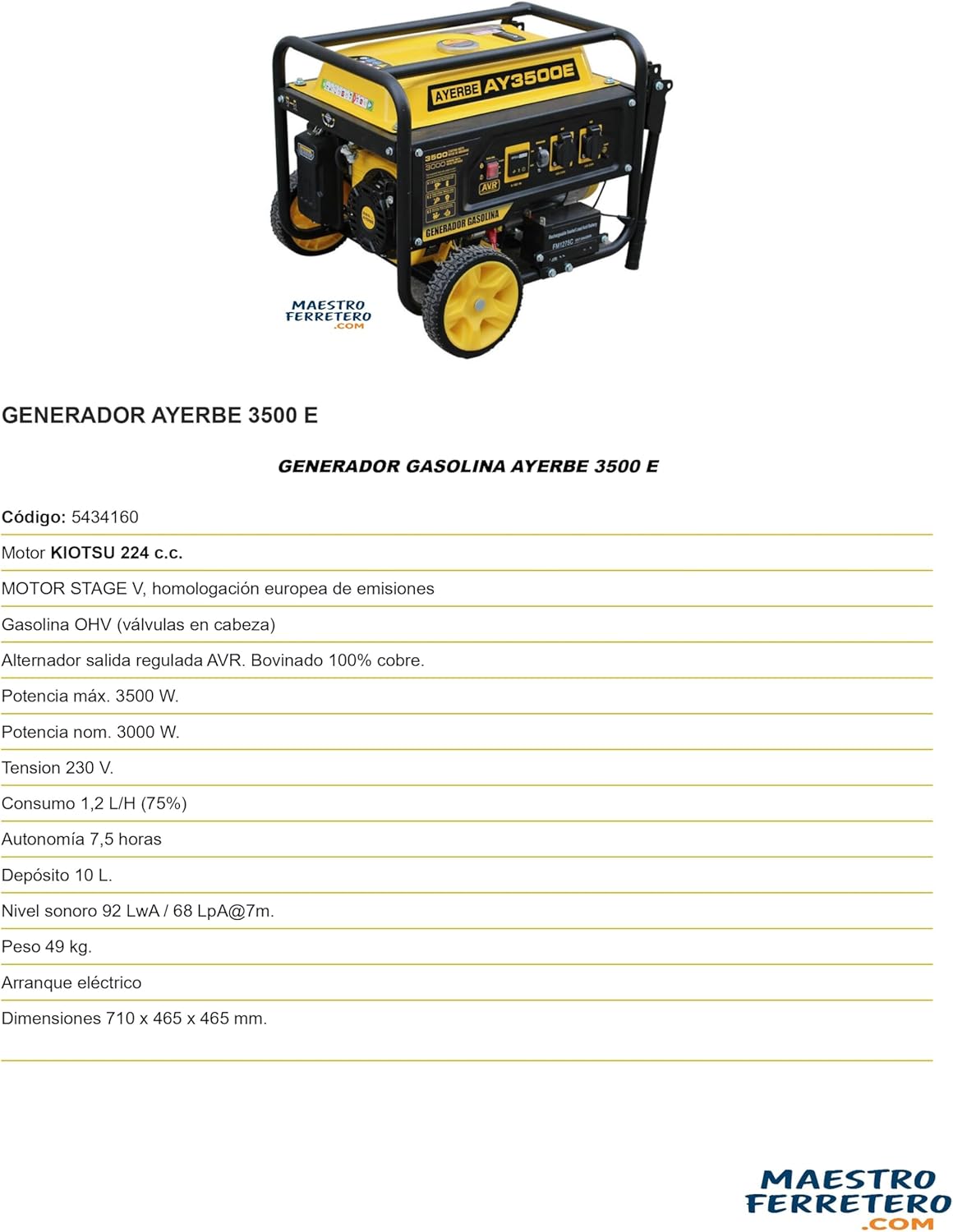 8. Precio y dónde comprar Gasoline Generator 3500 W with Kiotsu OHV Stage V Engine Electric Start and AVR Copper al mejor precio