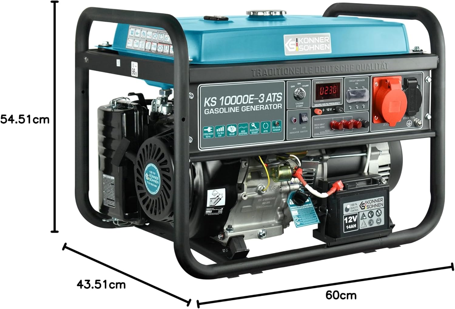 Könner & Söhnen KS 10000E-3 ATS – Generador de gasolina de 4 tiempos de 18 CV con E-start, alimentación de emergencia automática, regulador de tensión automático Generador 1x16A (400V/230V)
