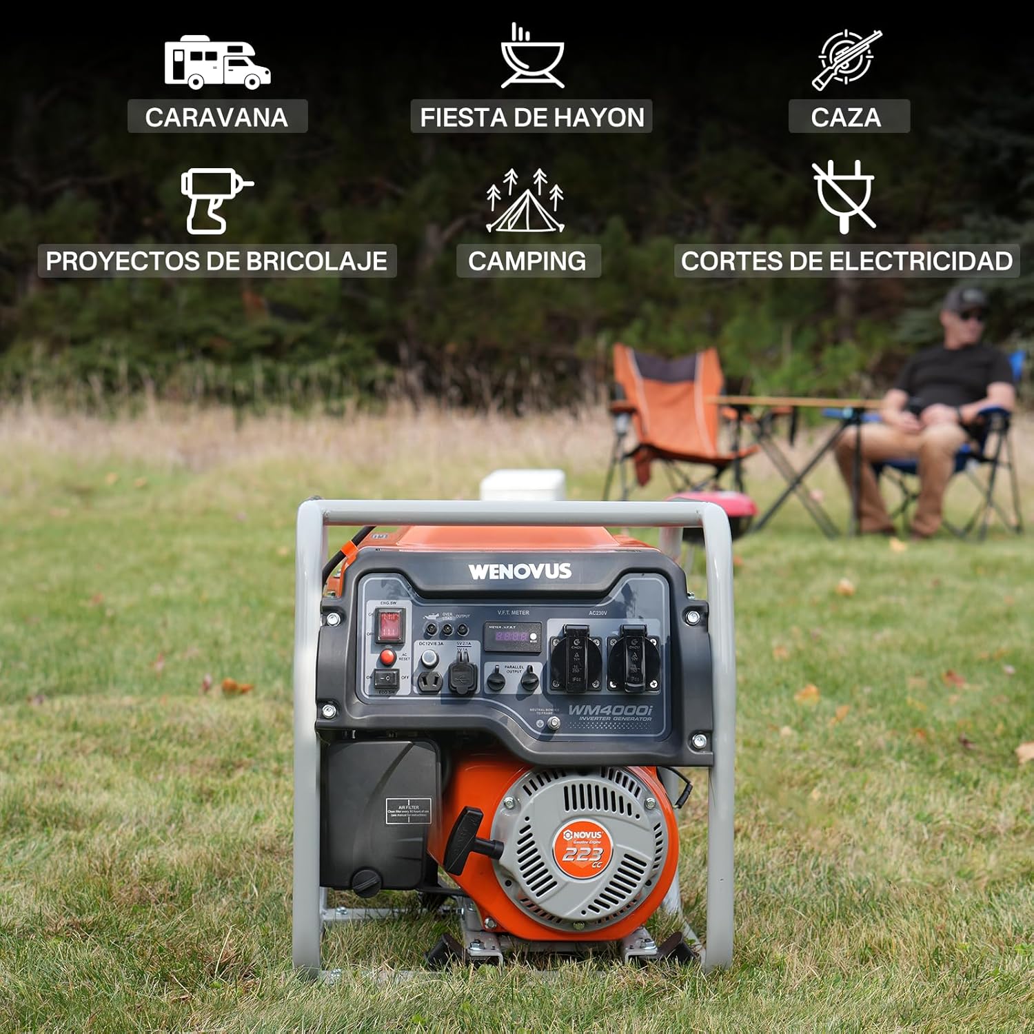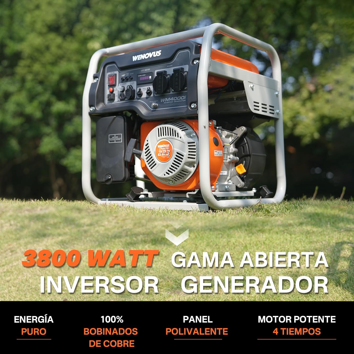 WENOVUS Gasoline Electric Generator 3800W Portable 4-Stroke Engine Inverter Generator with 2 x 230 V 2 x USB Tank 9L for Camping Motorhome Outage: La mejor opción portátil para tus necesidades eléctricas