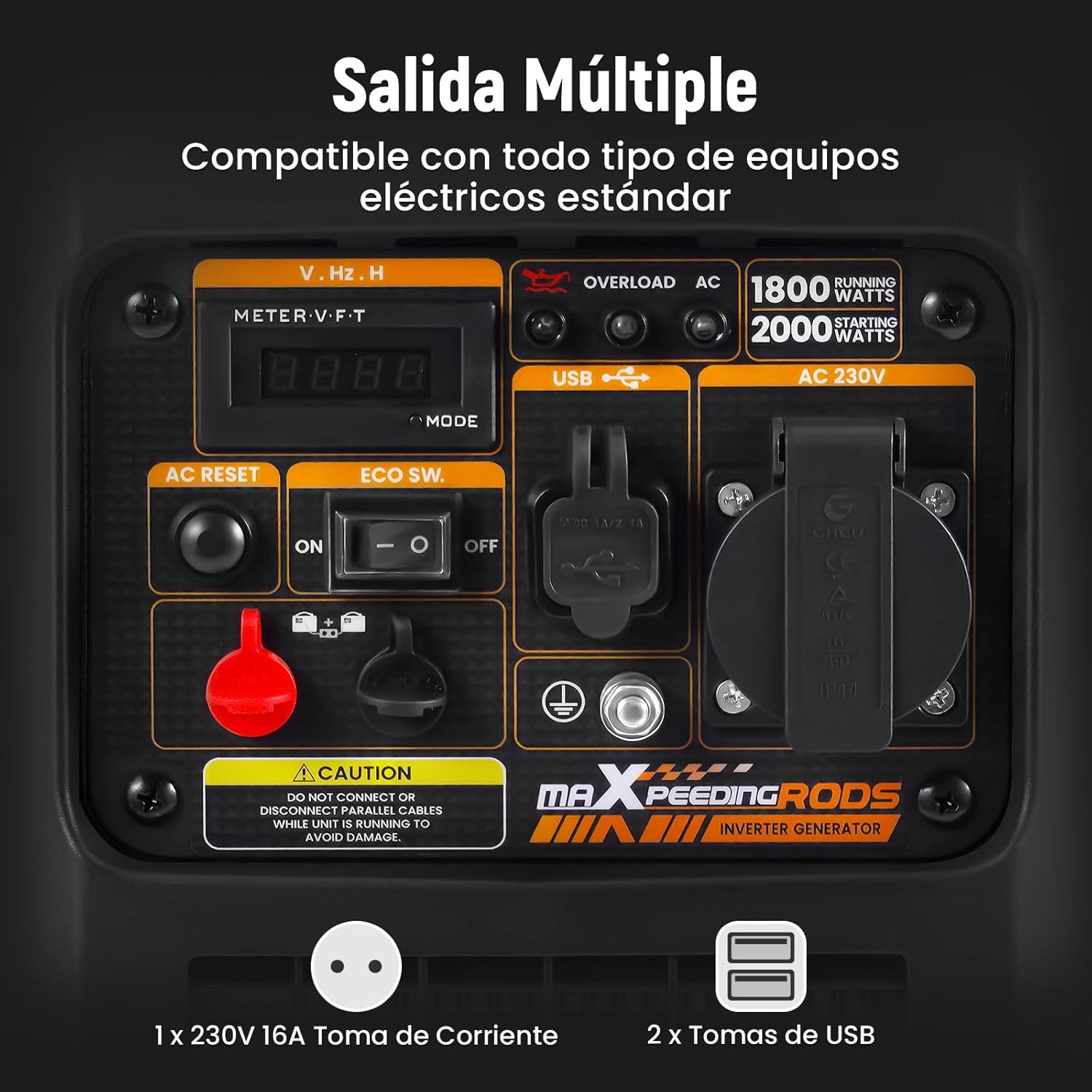 maXpeedingrods Gasoline Electric Generator 2000W Portable Silent Inverter Generator con USB y Salidas de 230V