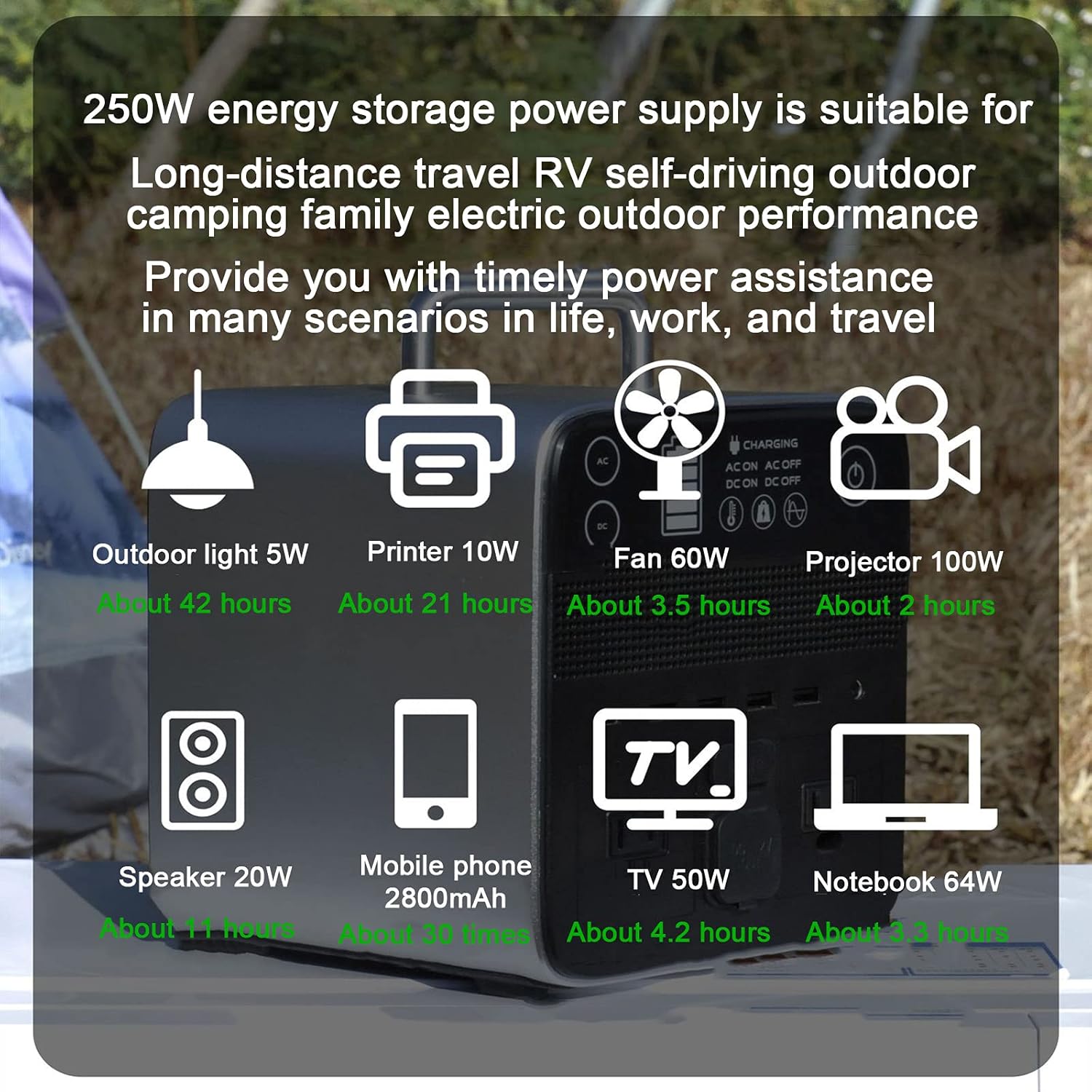 5. Pros y contras de Central eléctrica portátil, equipo de energía para exteriores, central eléctrica portátil y generador para exteriores de 250 W, energía solar, batería de iones de litio de 256 Wh