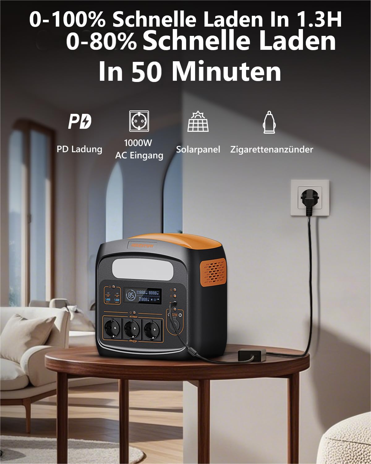 La Central eléctrica portátil N1200 es la solución perfecta para quienes buscan una fuente de energía confiable y versátil para uso doméstico y en exteriores. Con su batería de Lithium Iron Phosphate (LiFePO4) de 1102,5 Wh y capacidad para cargar al 100% en tan solo 80 minutos, este generador solar de onda sinusoidal pura de 50Hz se destaca entre la competencia. Ofrece una combinación ideal de portabilidad y potencia, haciendo de él un aliado indispensable para viajes, acampadas o situaciones de emergencia.