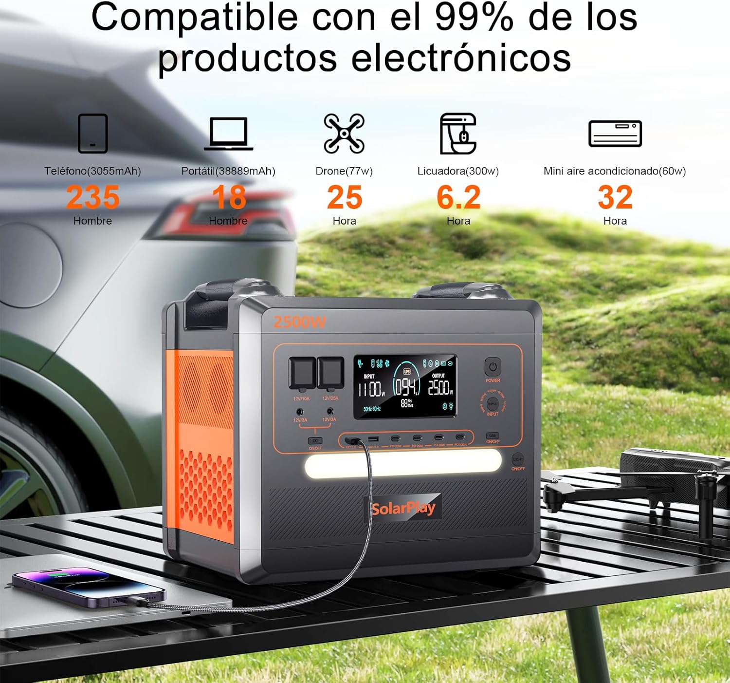 - Potencia de 2500W: Ideal para suministrar energía a electrodomésticos, herramientas eléctricas y otros equipos.