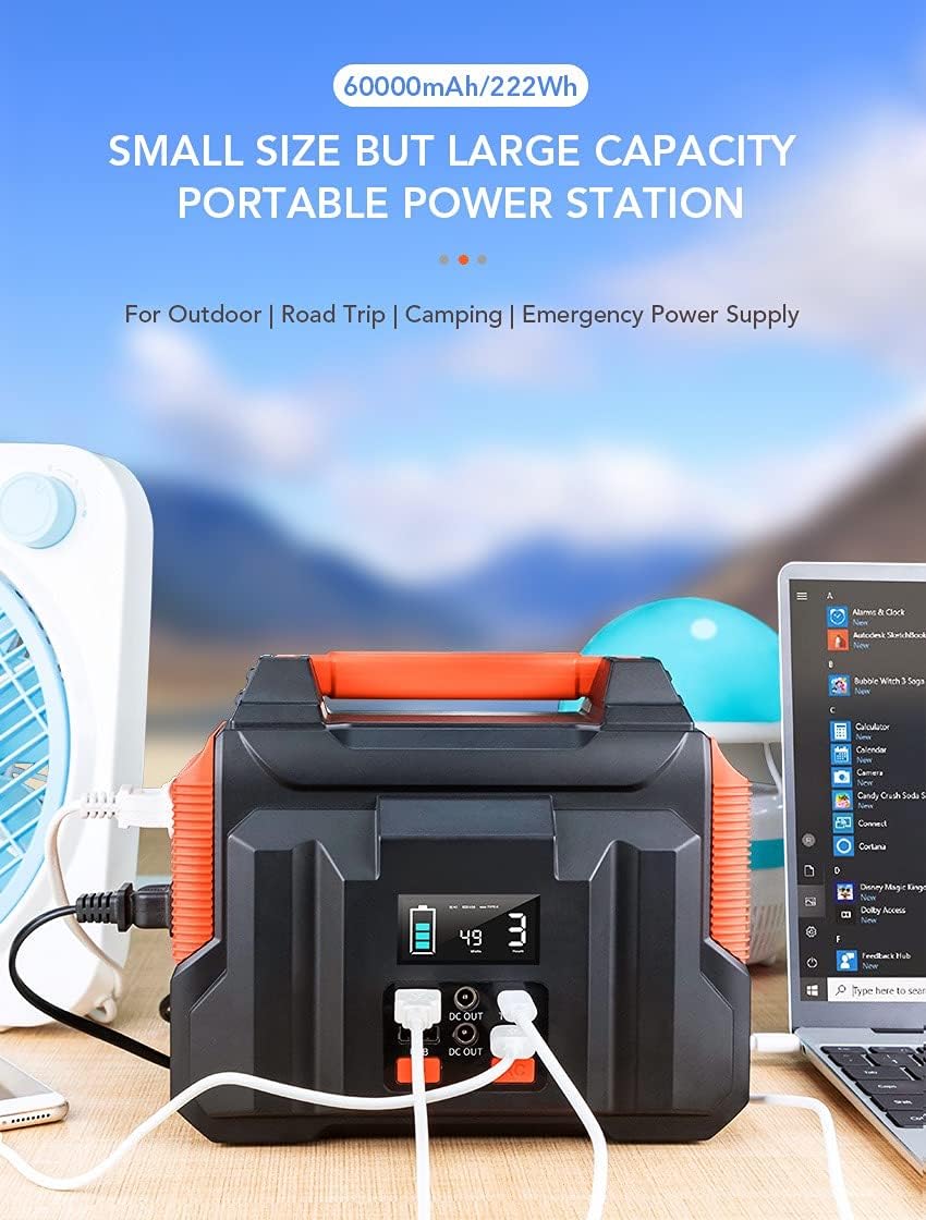 5. Pros y contras de Central eléctrica, batería de litio de respaldo de 222 Wh, generador solar portátil de 60 000 mAh con USB, carga rápida, energía de respaldo de emergencia para el hogar, exteriores, campamentos y viajes
