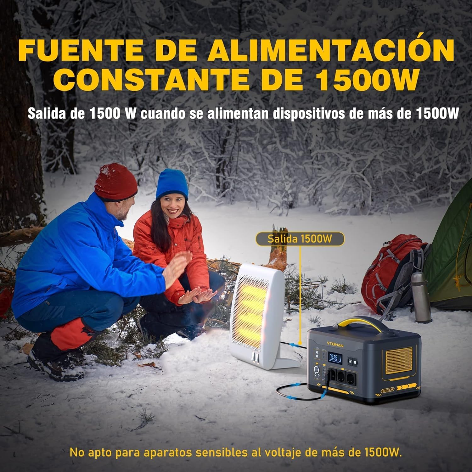 Potente Batería LiFeP04: Con 828Wh de capacidad, esta batería es conocida por su alta eficiencia y durabilidad. Además, proporciona hasta 1500W de salida continua, lo que permite alimentar varios dispositivos simultáneamente.