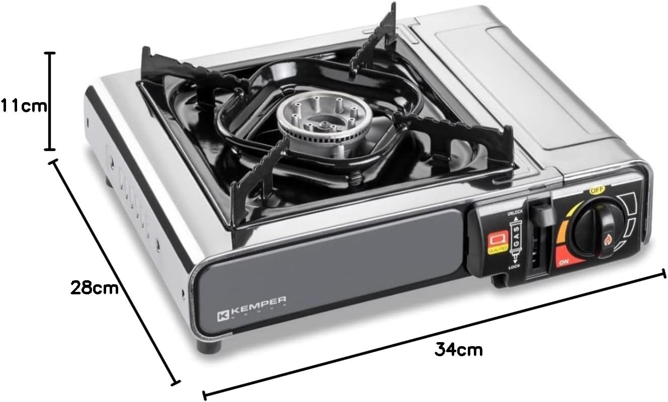 El Hornillo de gas KEMPER es una elección ideal para quienes buscan eficacia y seguridad en un formato compacto.