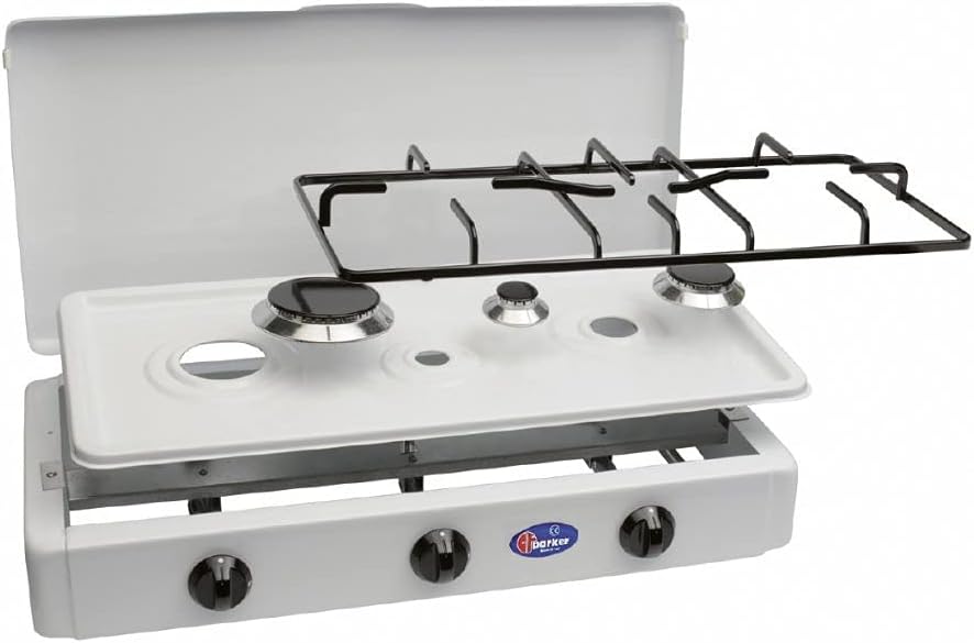8. Precio y dónde comprar Hornillo de mesa Parker 3 fuegos con tablero extraíble para la limpieza alimentado gas metano para uso exterior FO300CGPM al mejor precio