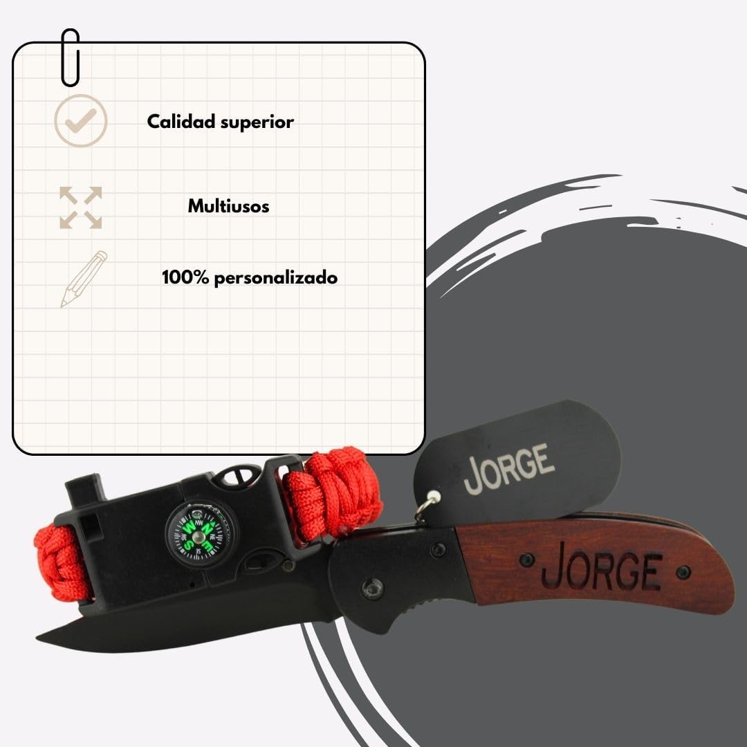 2. Características destacadas de Pack Navaja Personalizada, Pulsera de Supervivencia Personalizada Y Chapa Militar Personalizada | 5 Funciones | Navajas de Albacete | Navaja Personalizada Para Hombre | Kit Supervivencia