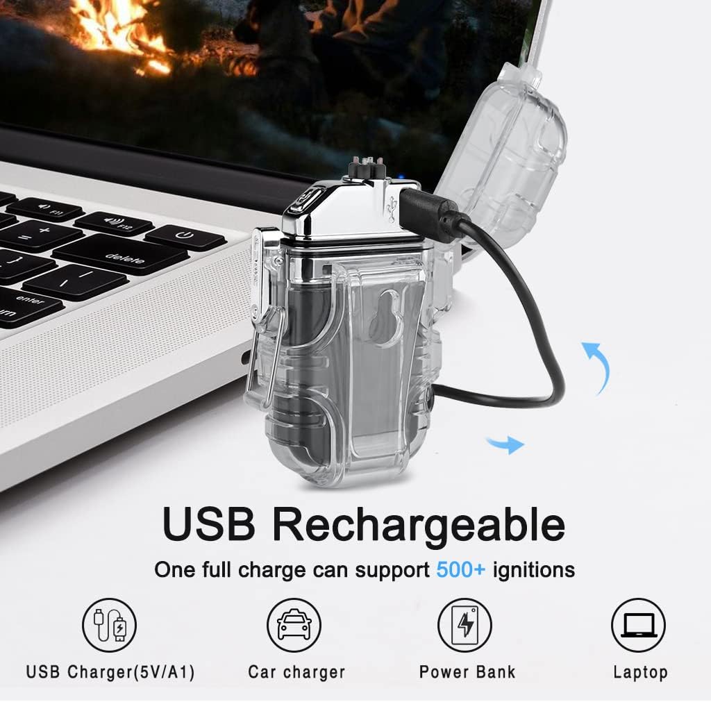 SUPRUS Mechero eléctrico resistente al agua, 3 modos, linterna a prueba de viento, doble arco, recargable, encendedor de plasma de doble arco con silbato de supervivencia y correa para el cuello