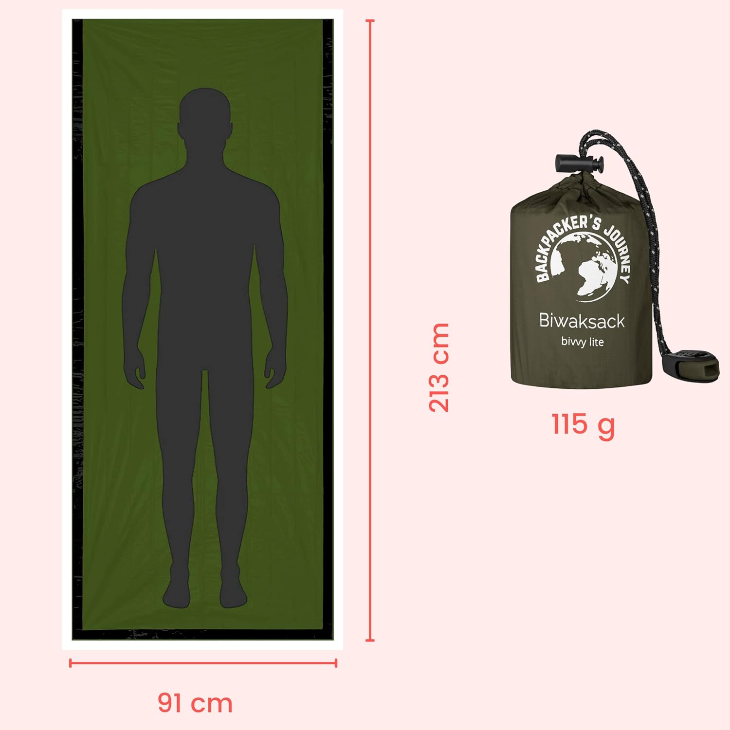 Backpacker’s Journey Saco de Dormir de Emergencia Ultraligero e Impermeable. Ideal para Camping, Senderismo y Aventura