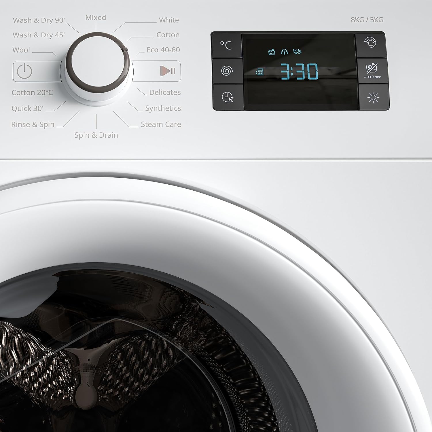 - Capacidad Ideal: Con 8 kg de capacidad de lavado y 5 kg para secado, es perfecta para familias de tamaño medio.