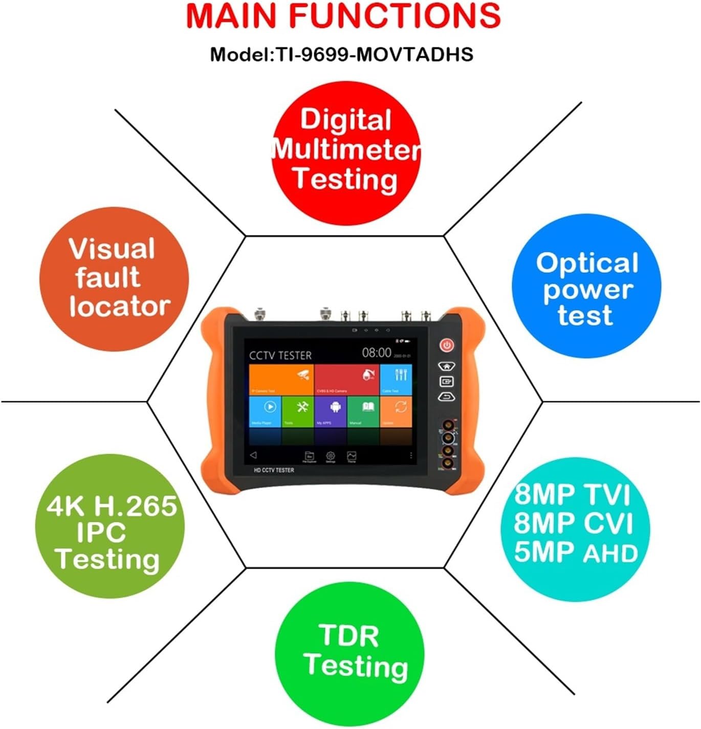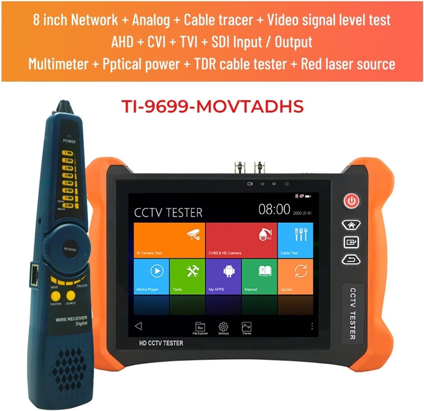 Comprobador de CCTV 8 Pulgadas 12MP Monitor IP 4K AHD TVI CVI SDI Todo en Uno TI-9699 MOVTADHS