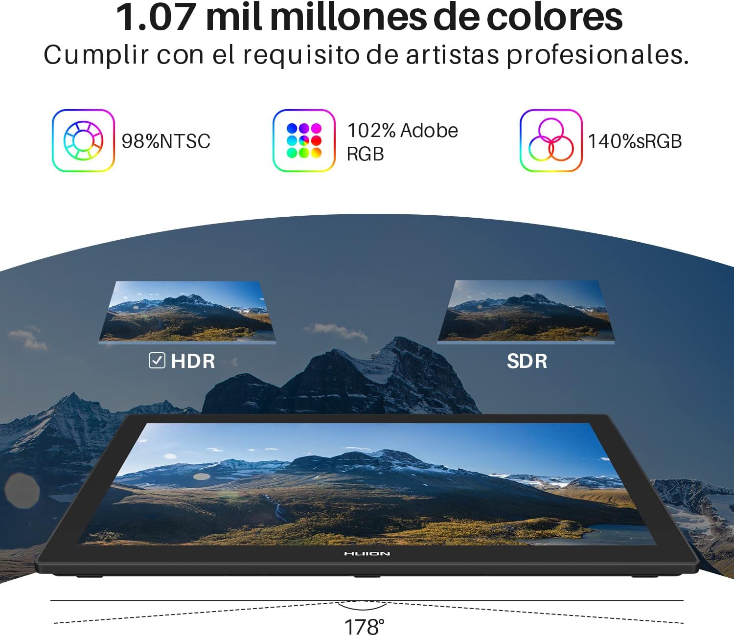 • Colores vibrantes: Cubriendo un 140% de la gama sRGB, sus colores son más ricos y auténticos.