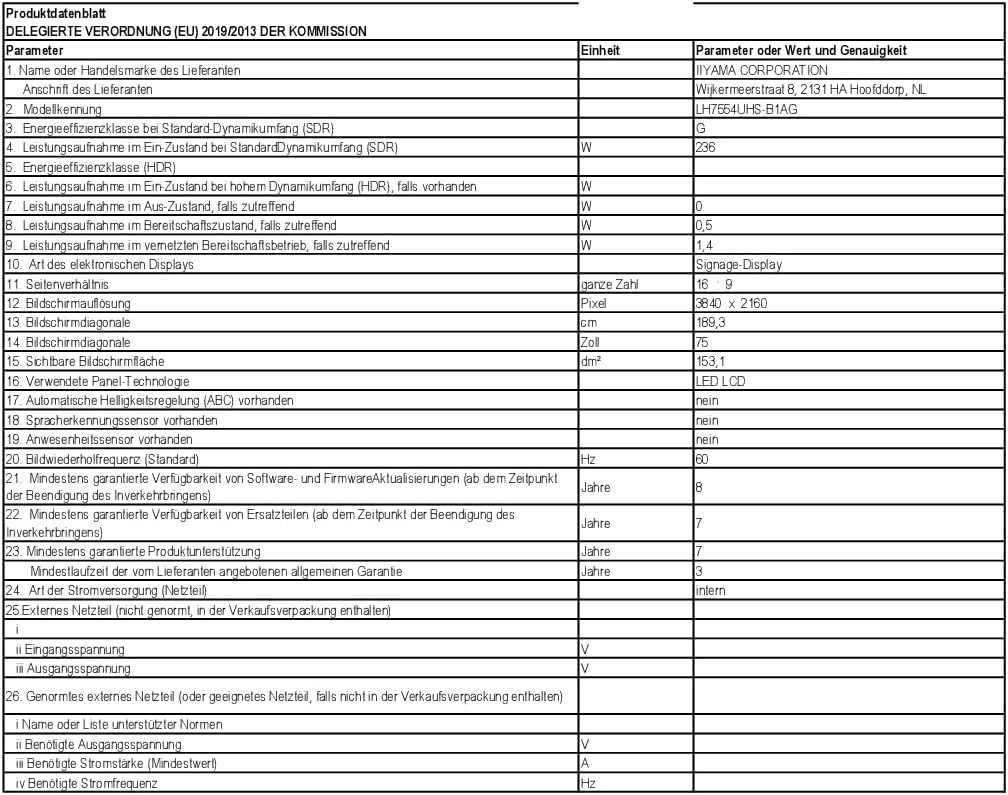 A continuación se presentan las especificaciones más relevantes del IIYAMA LH7554UHS-B1AG: