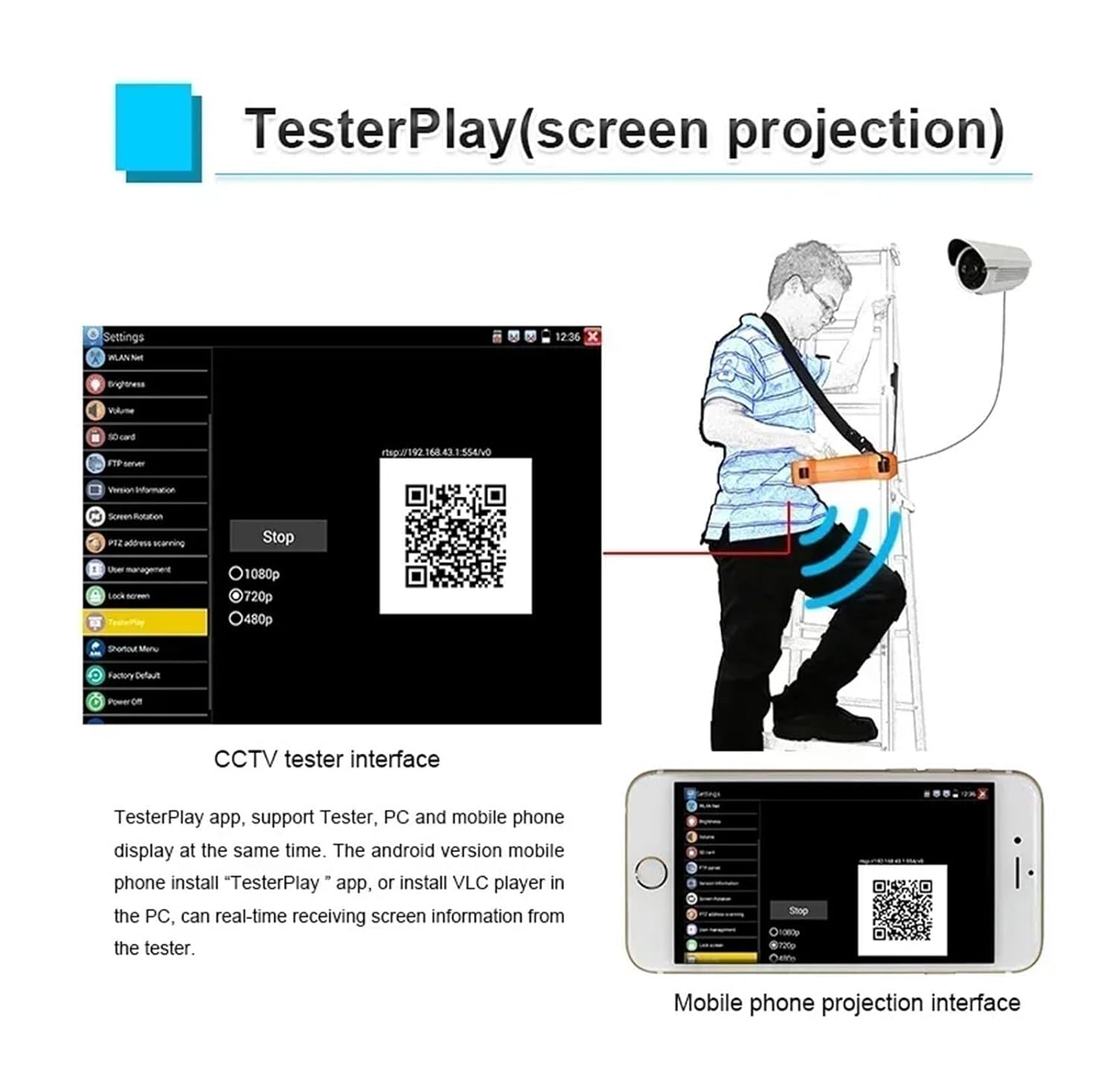 Probador de cámaras CCTV: X9MOVTADHS 8K IP H.265 Monitor probador 4K cámara de 8MP herramienta de prueba profesional con todas las funciones TDR, rastreador de cables, multímetro Digital (X9-MOVTAHDS P)