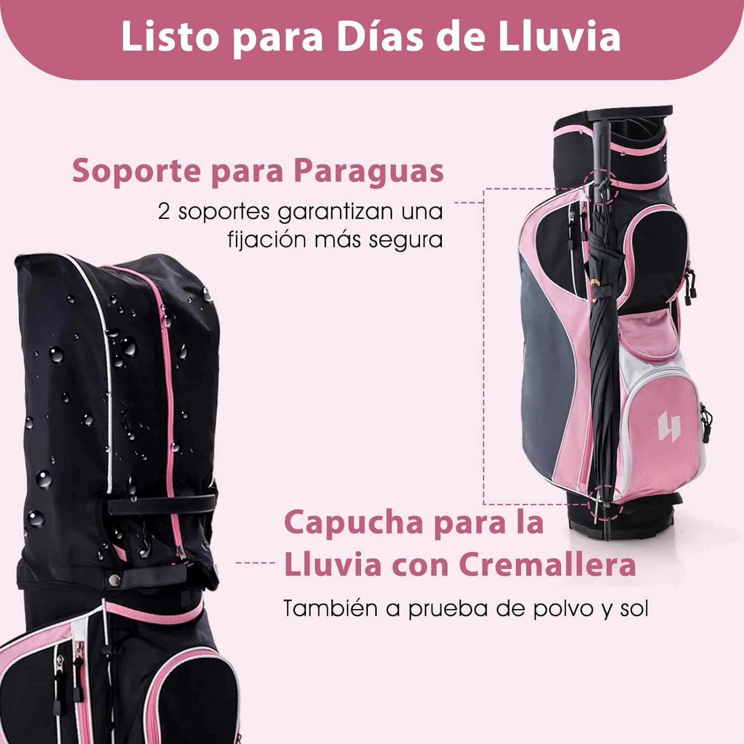 El COSTWAY Juego de Palos de Golf para Mujer es una opción excepcional para golfistas de todos los niveles. Con un diseño pensado especialmente para mujeres, este conjunto incluye un driver de 460CC, madera de fairway y un híbrido, además de un completo set de hierros y un putter. La bolsa de carrito portátil y su capucha para lluvia garantizan que los jugadores estén siempre preparados, independientemente del clima. Su ergonomía y liviandad permiten disfrutar del juego sin la carga de llevar un peso excesivo, convirtiéndolo en una compra recomendable en su categoría.